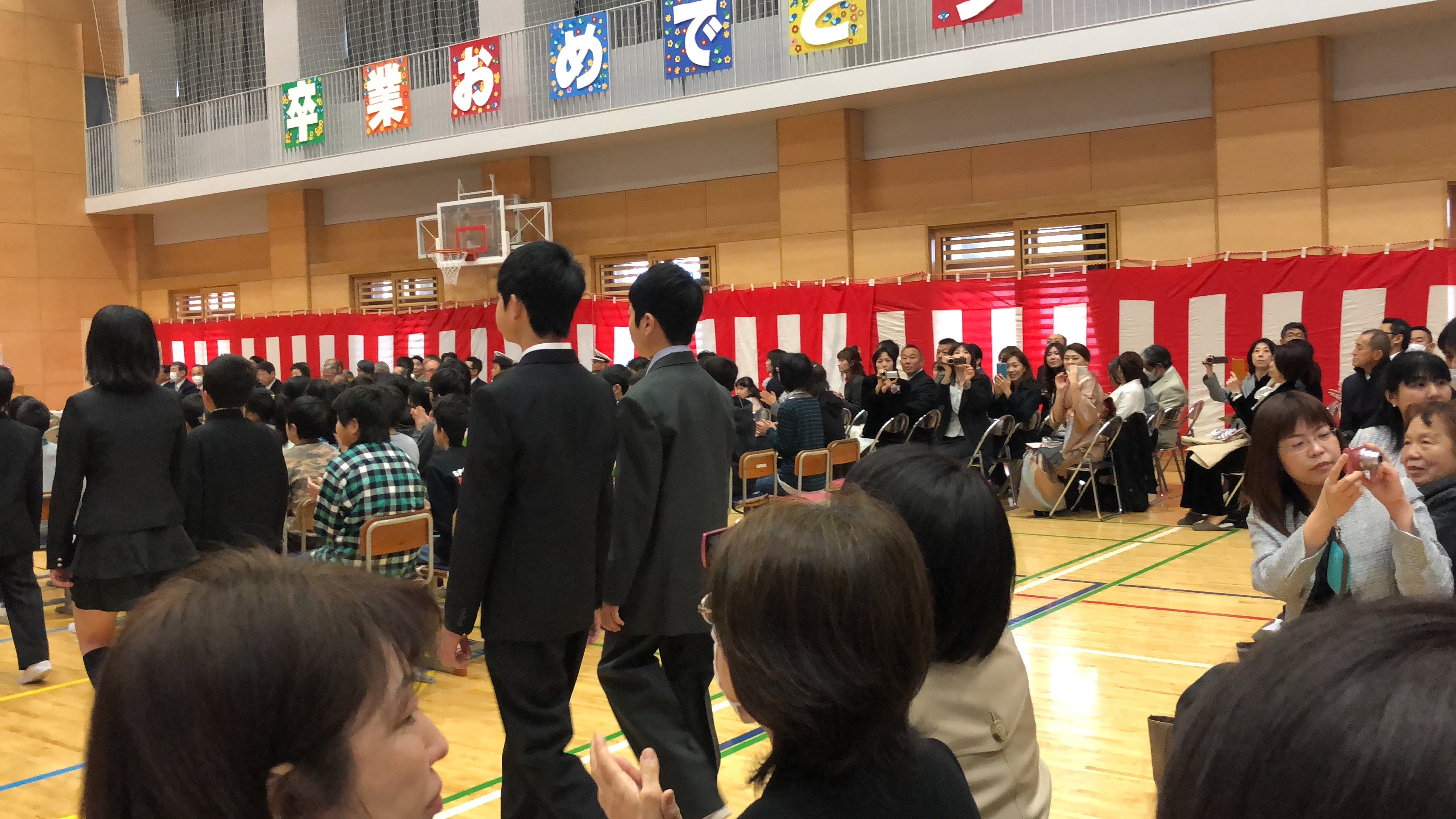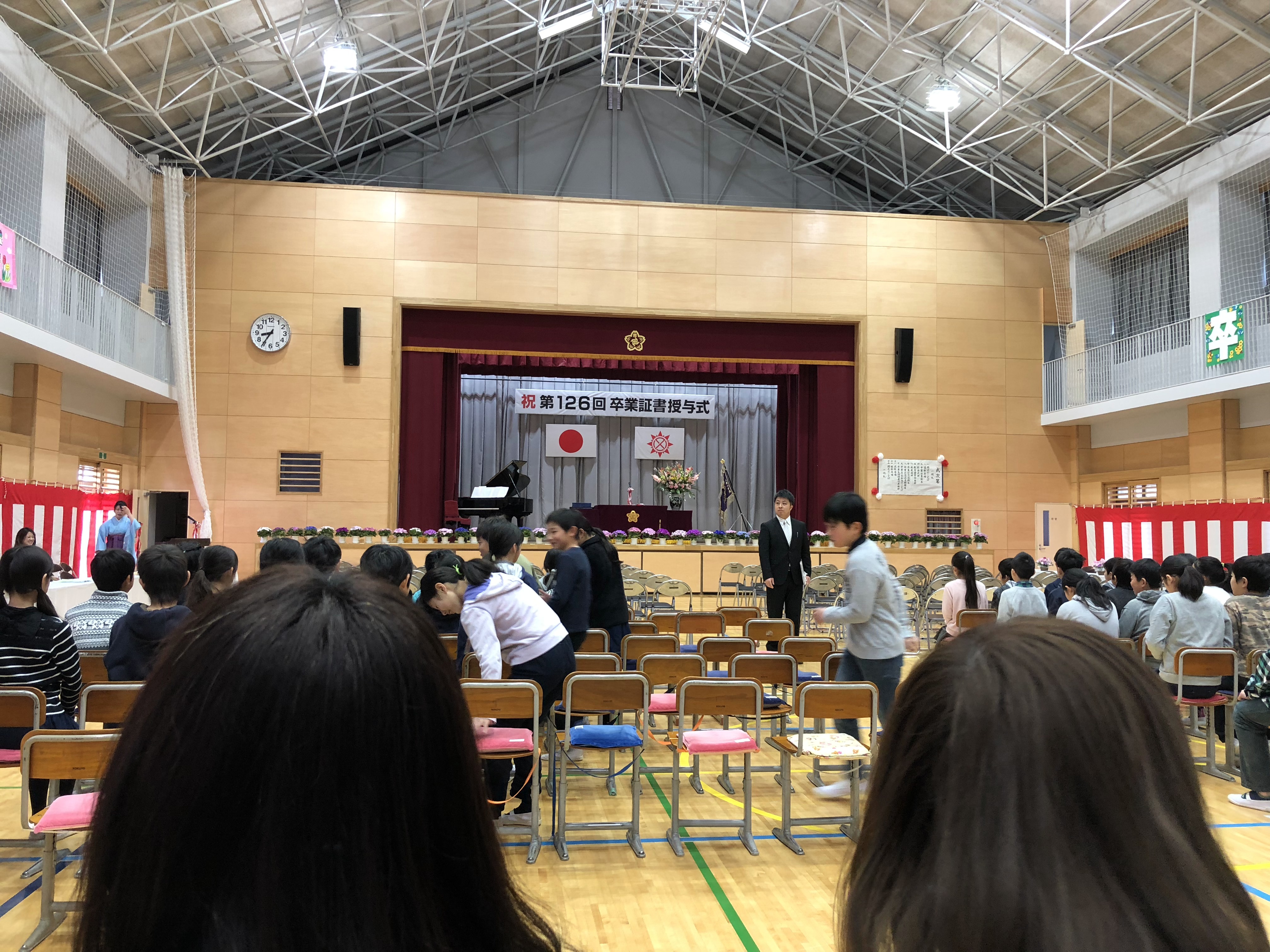 앞쪽 몇열 좌석은 선배들의 졸업을 축하해주는 5학년 아이들이 앉습니다.