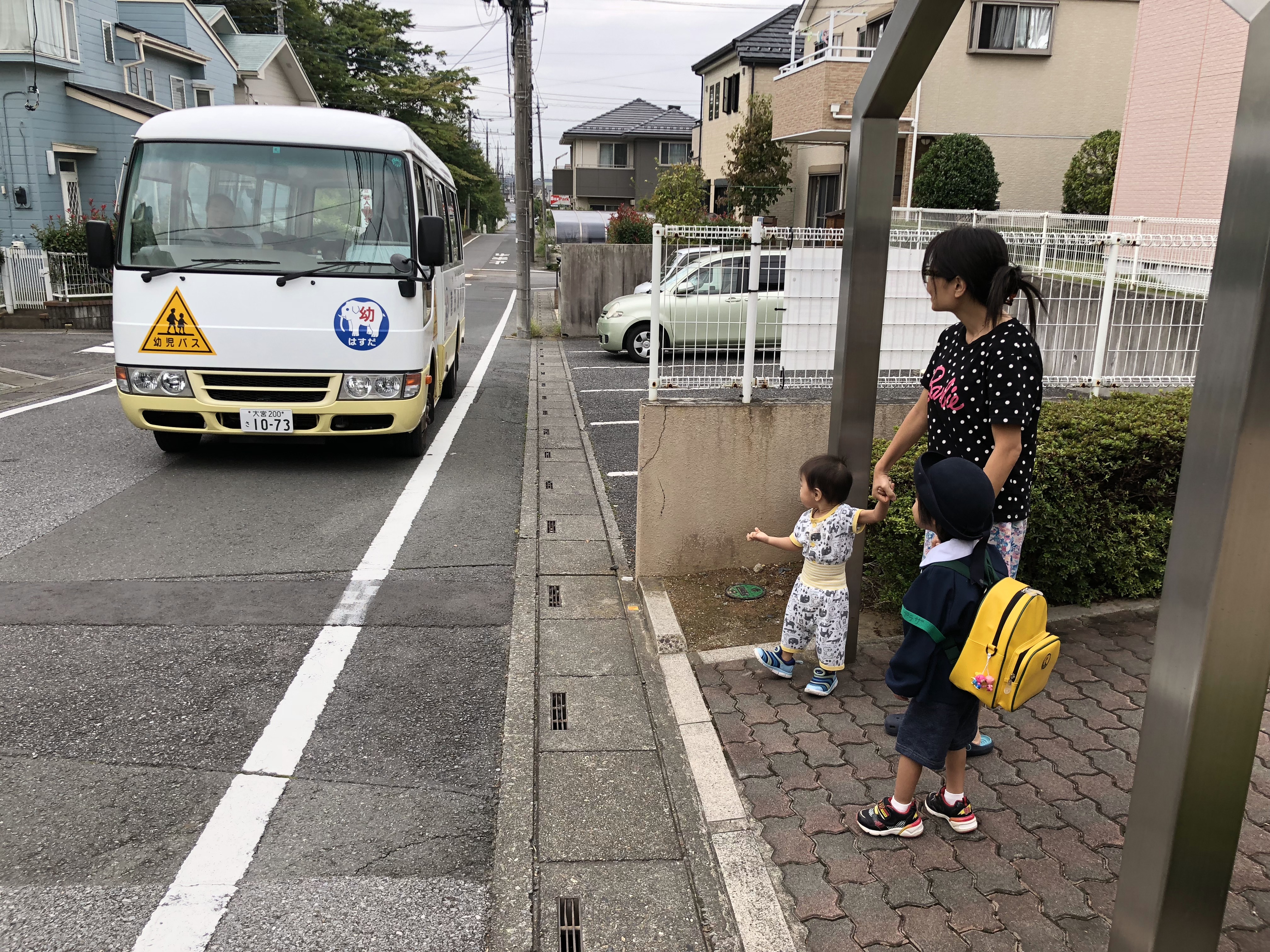 아침이면 유노는 유치원에 갑니다.