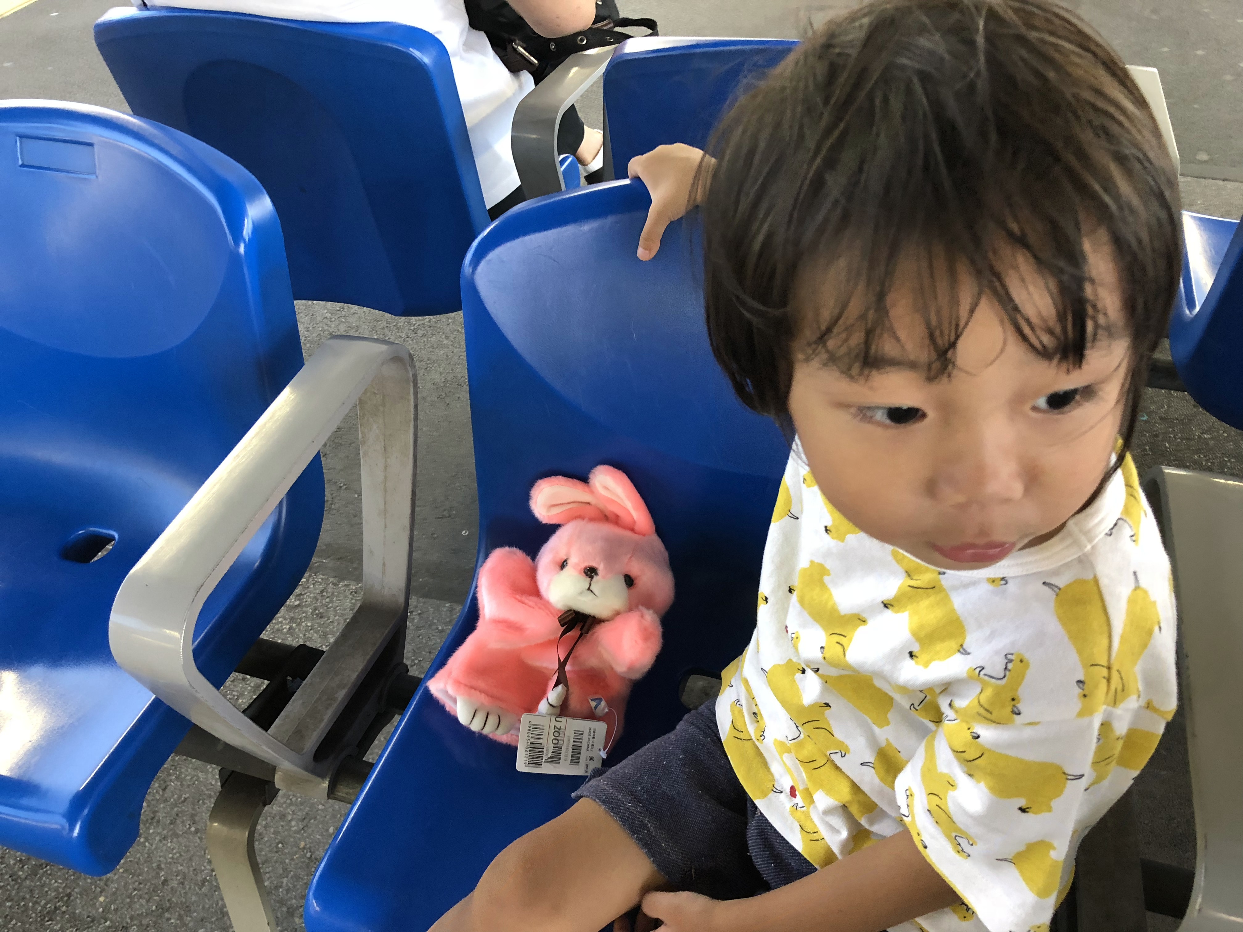 유노가 고른 손 넣고 인형놀이 할수 있는 토끼 인형을 옆에 앉혀놨네요. ㅋㅋ