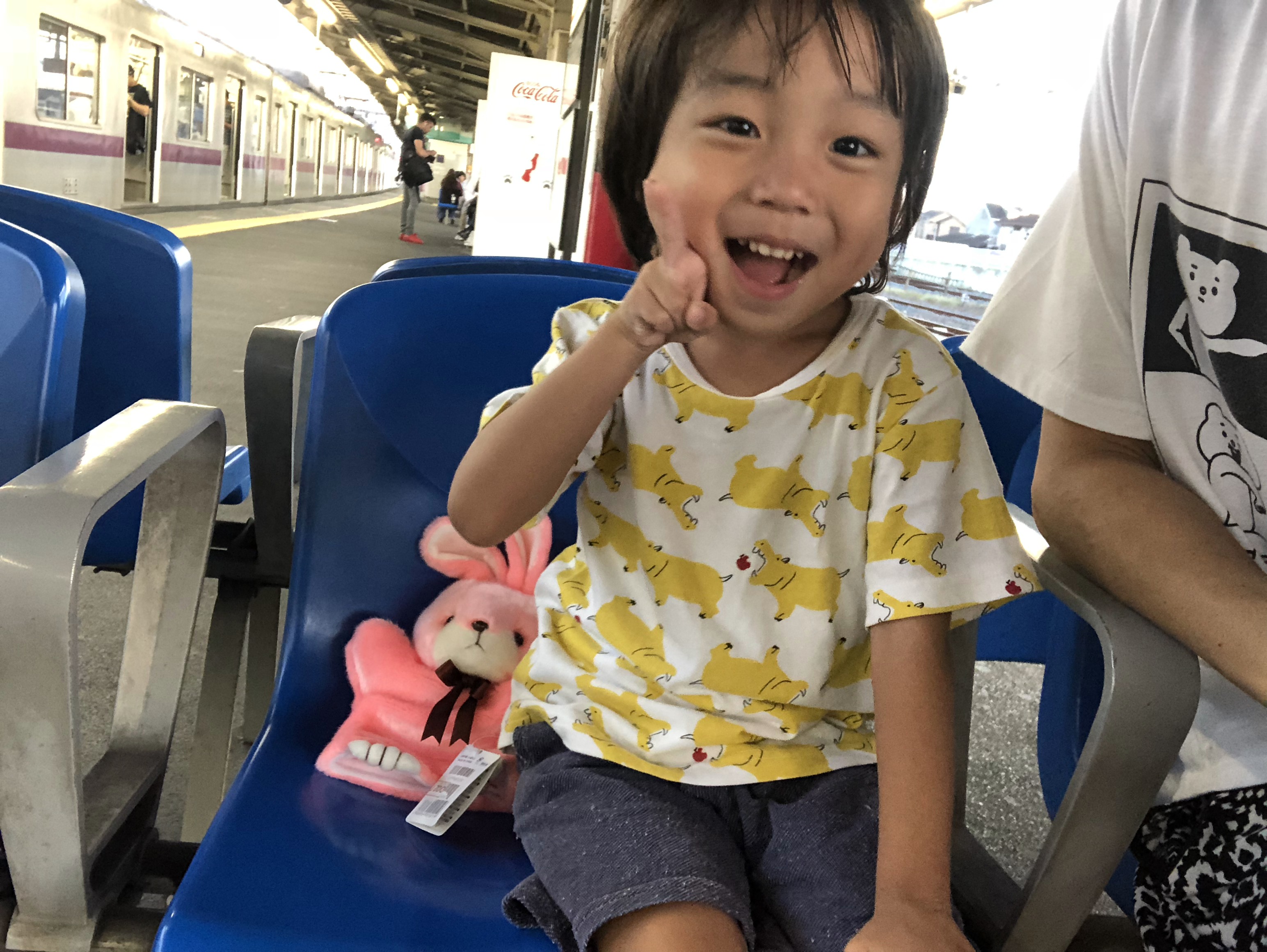 유노가 고른 손 넣고 인형놀이 할수 있는 토끼 인형을 옆에 앉혀놨네요. ㅋㅋ