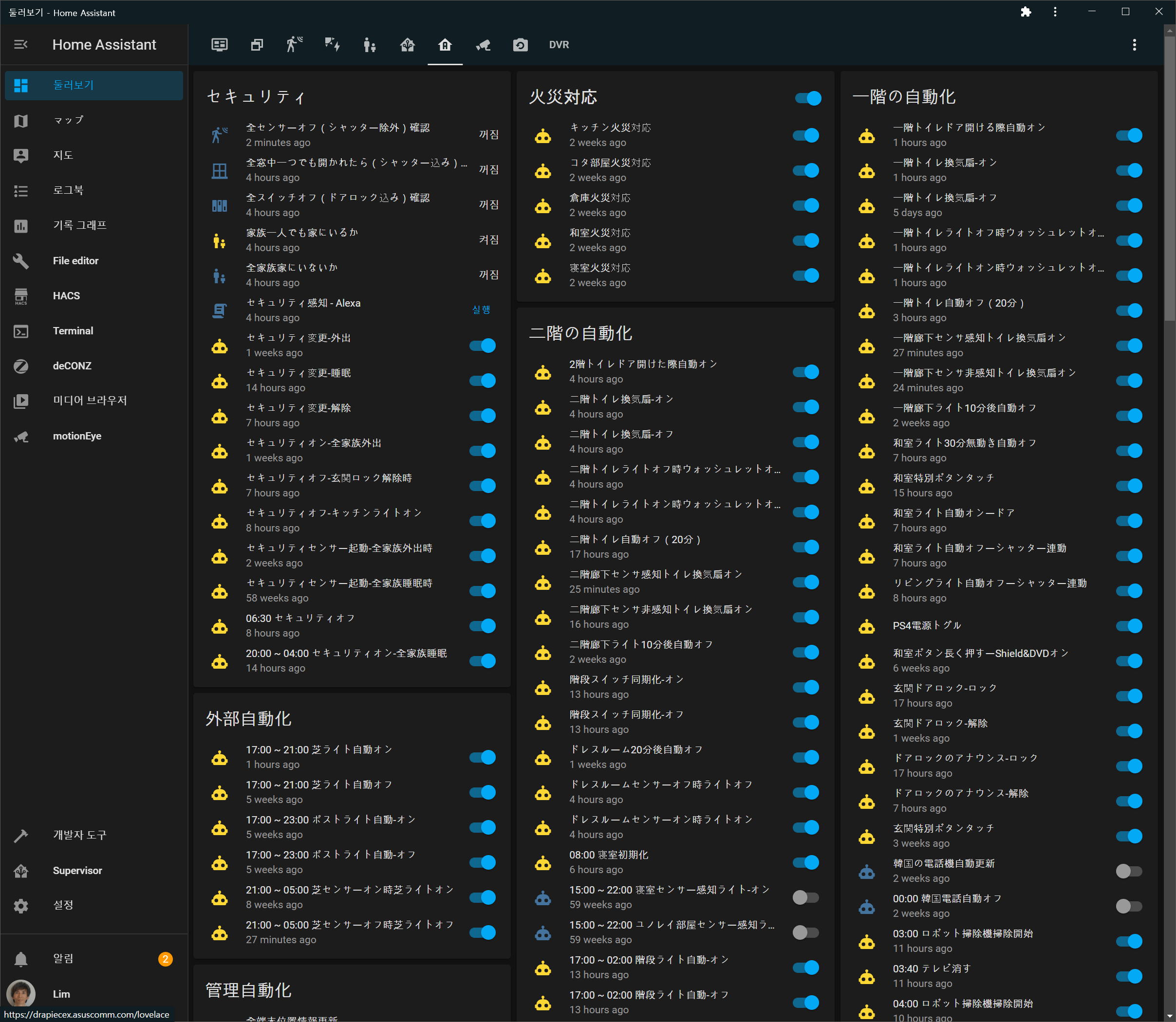 저희 집에 적용되어 있는 자동화의 일부입니다.