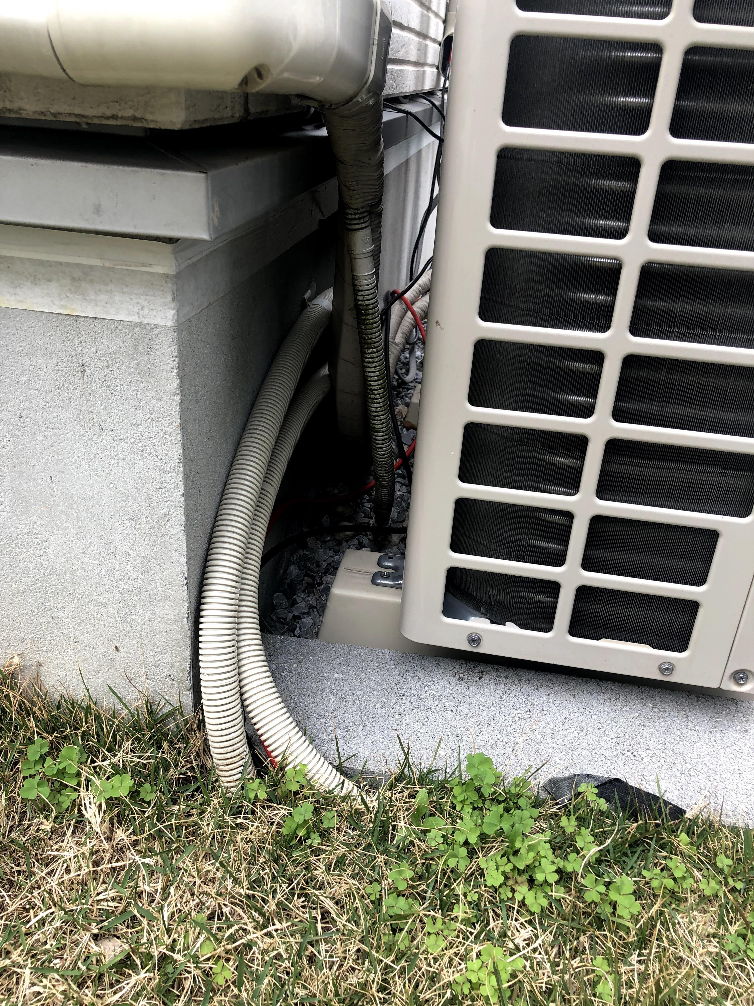 그 접착식 몰딩 2줄을 모두 제거하고 중형 에어컨 배관으로 고정하였다.