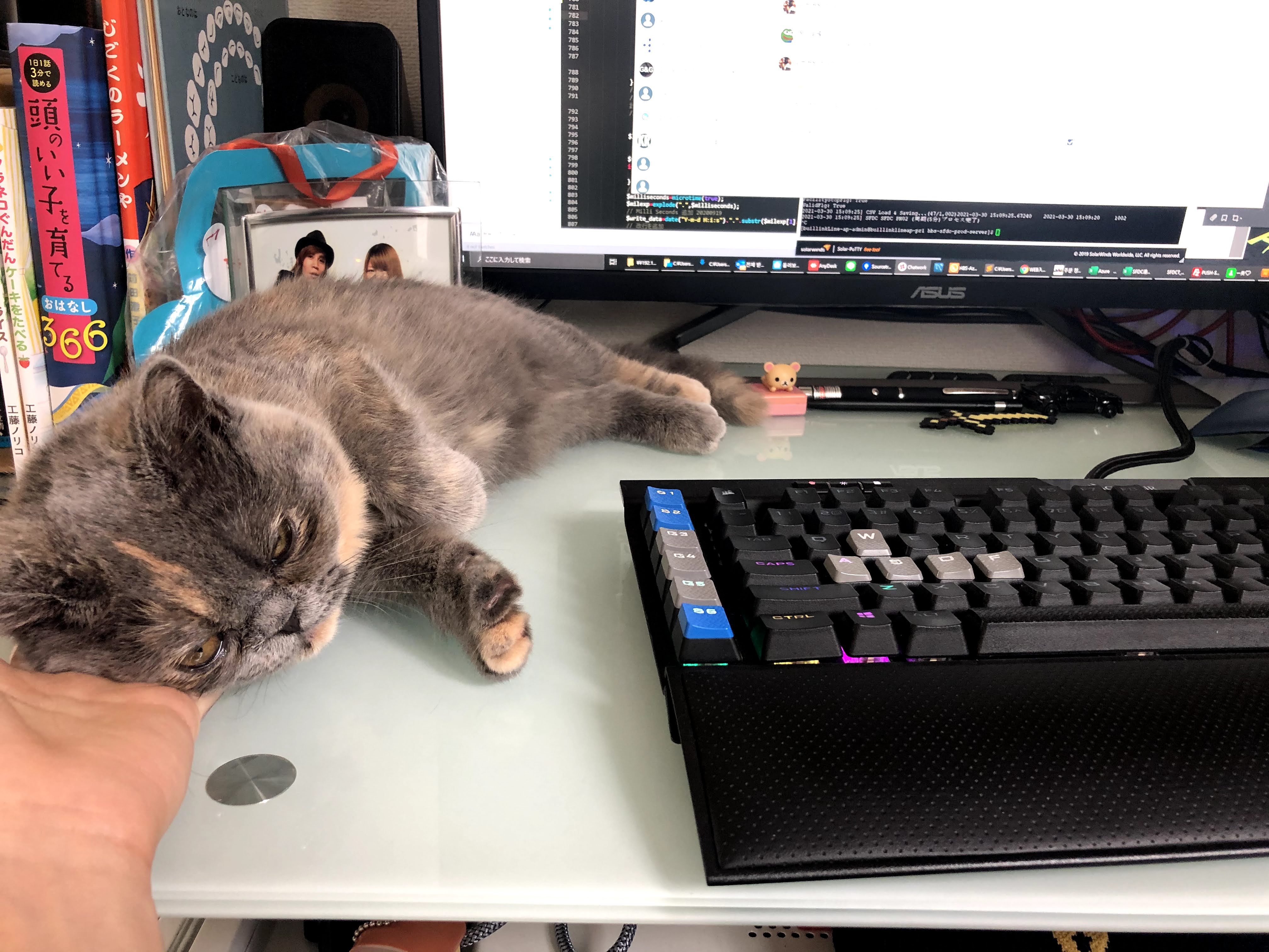 조금 하고 있다보니, 참치캔(아침,점심,저녁으로 먹는 부식)을 먹고 올라온 공주짱이 책상위에 올라와서 눕는다.