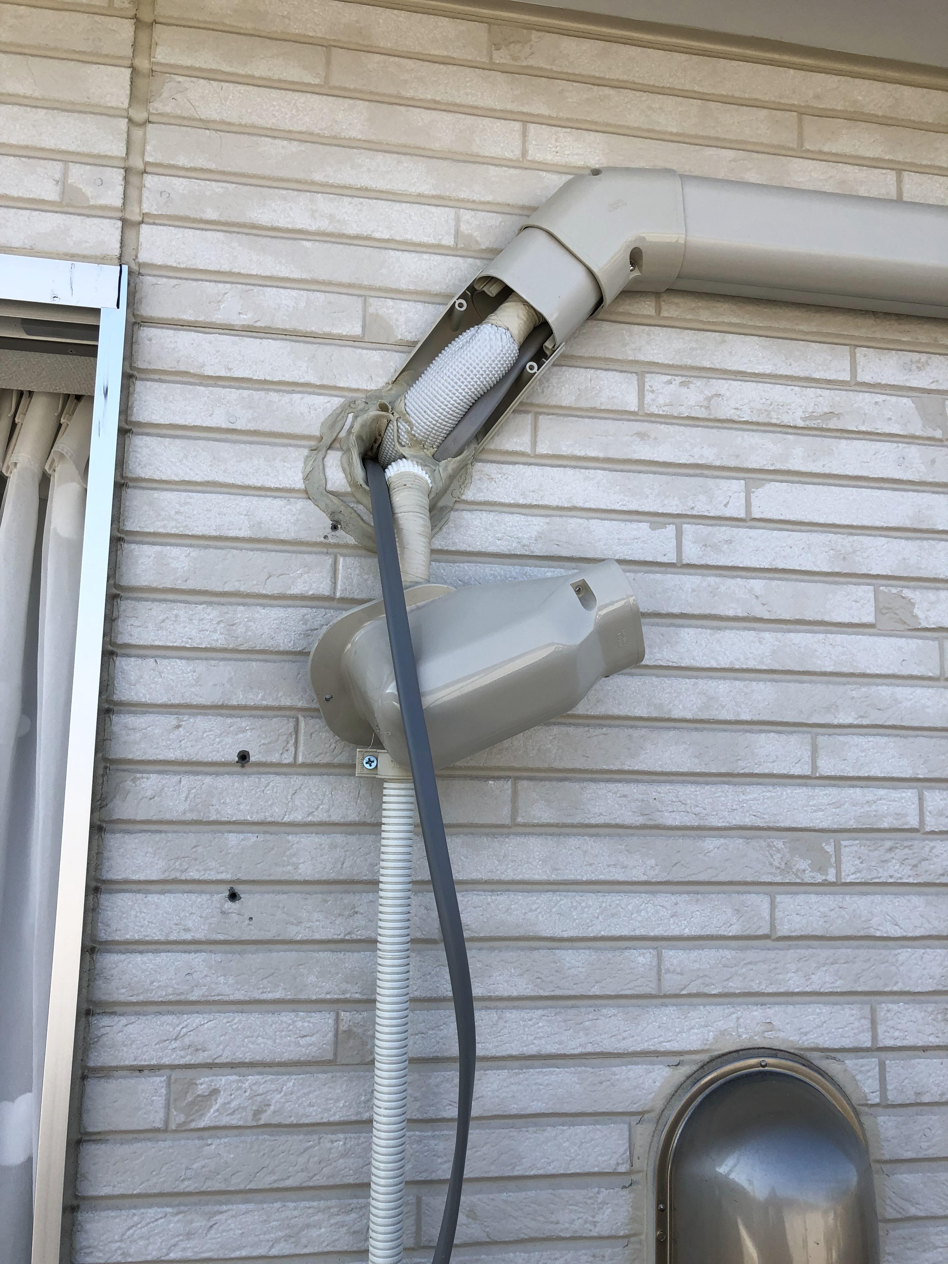 사진은 유노레이방으로 들어가는 에어컨 배관커버를 열어서, 전기 코드를 집어넣은 상태이네요.