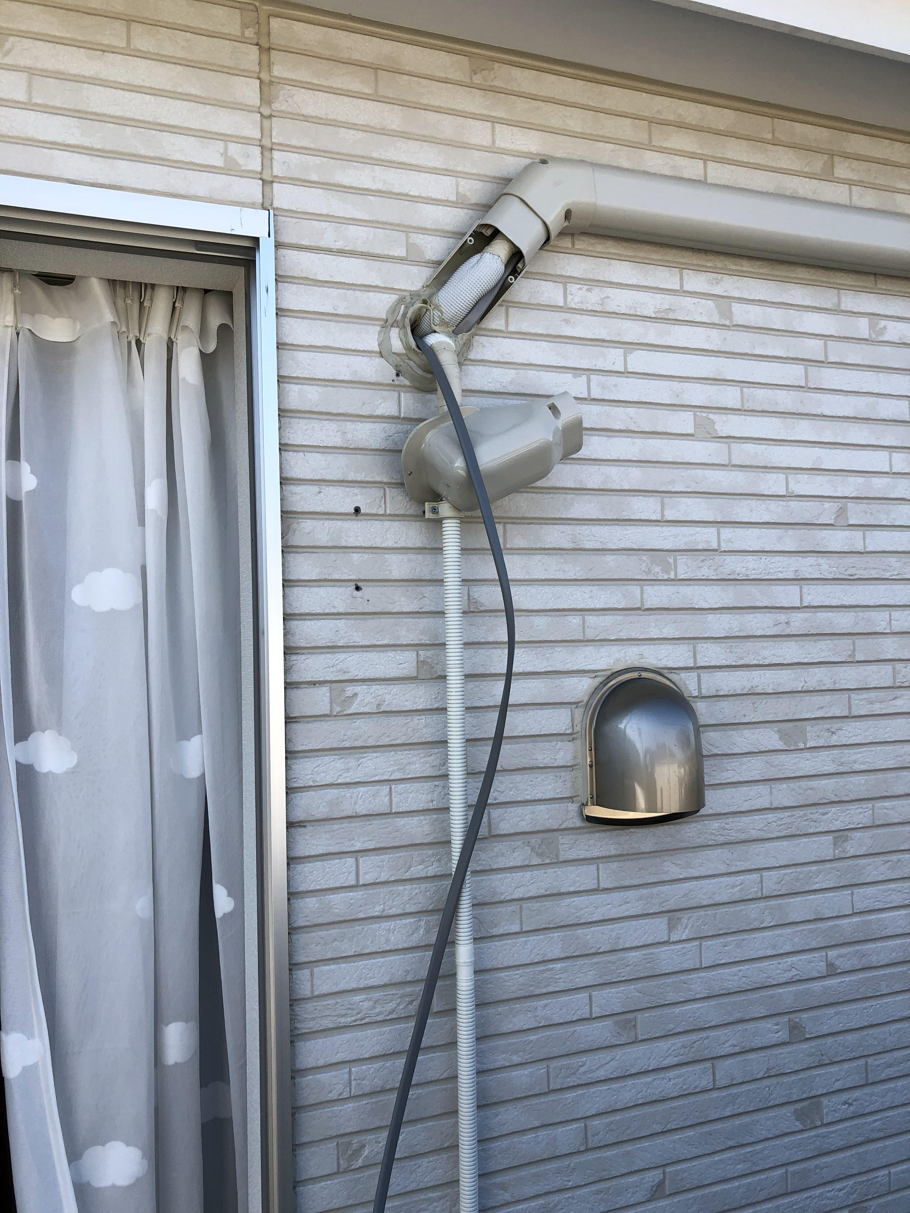 - 유노레이방 안쪽에서는 에어컨 뒤쪽을 따라 선을 안보이게 하여 콘센트에 체결,