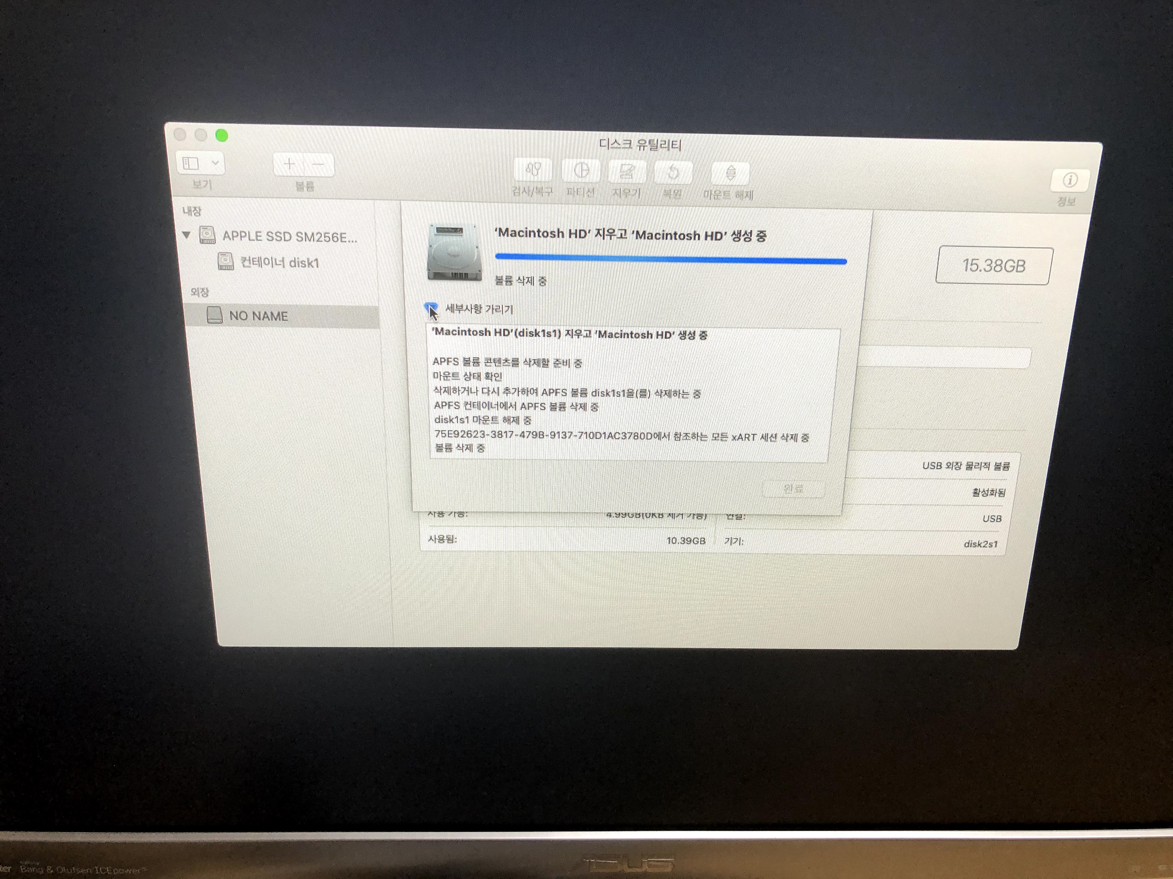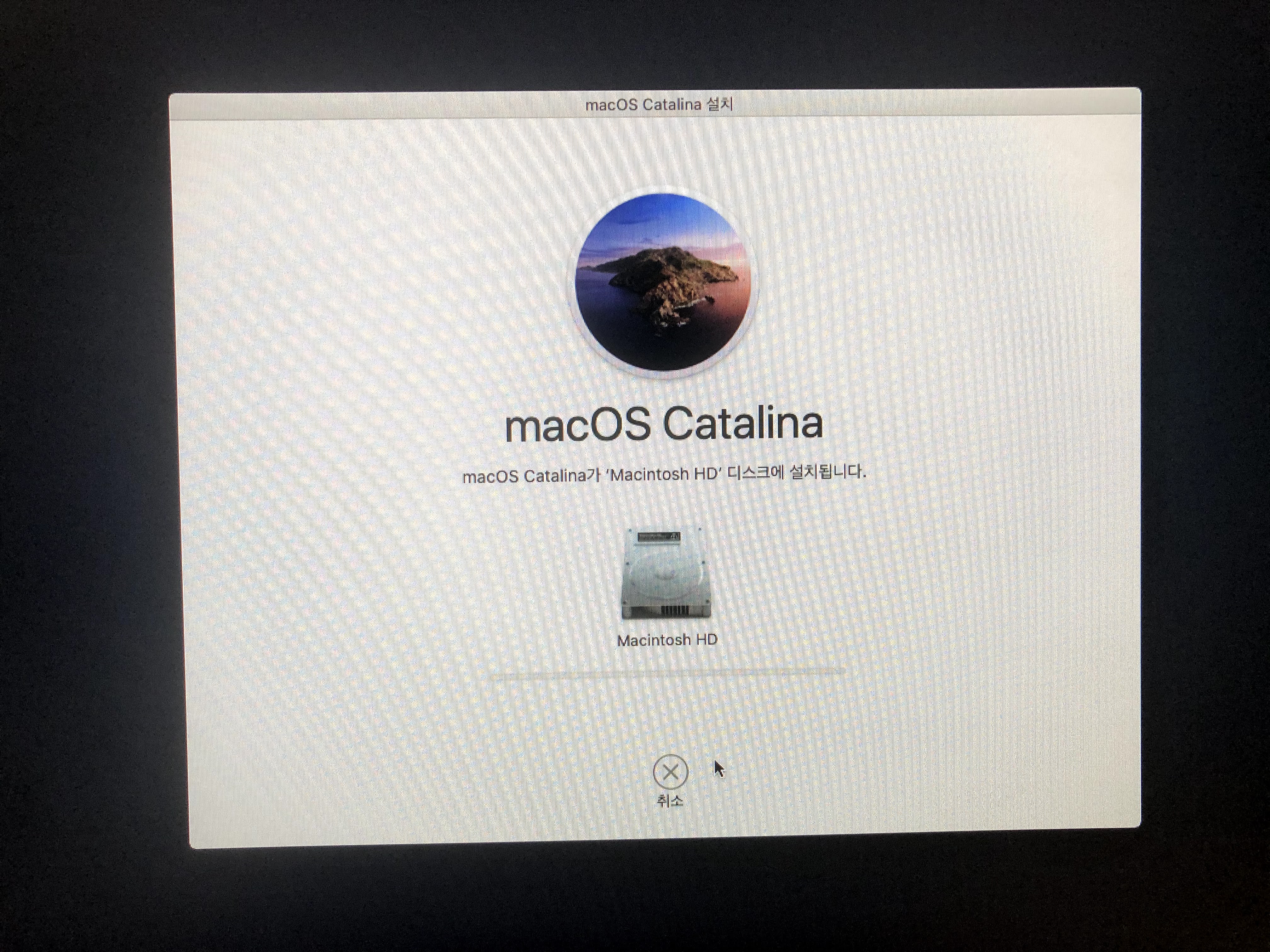 일전 맥북에어 2011에 macOS 10.15 카탈리나 설치할때 쓰던 USB시동디스크를 넣고 강제 부팅을 진행합니다.