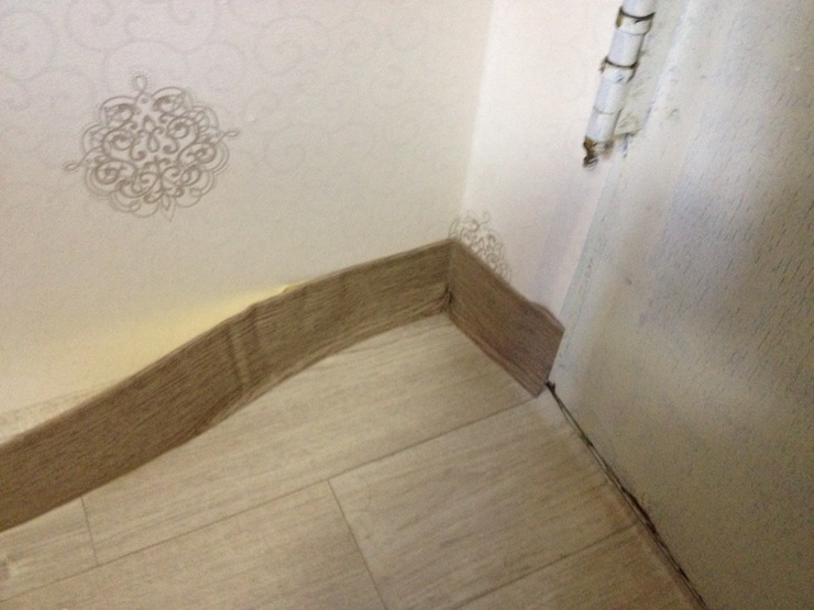 너무 딱맞게 깔려서 굽도리를 깔아줬습니다.