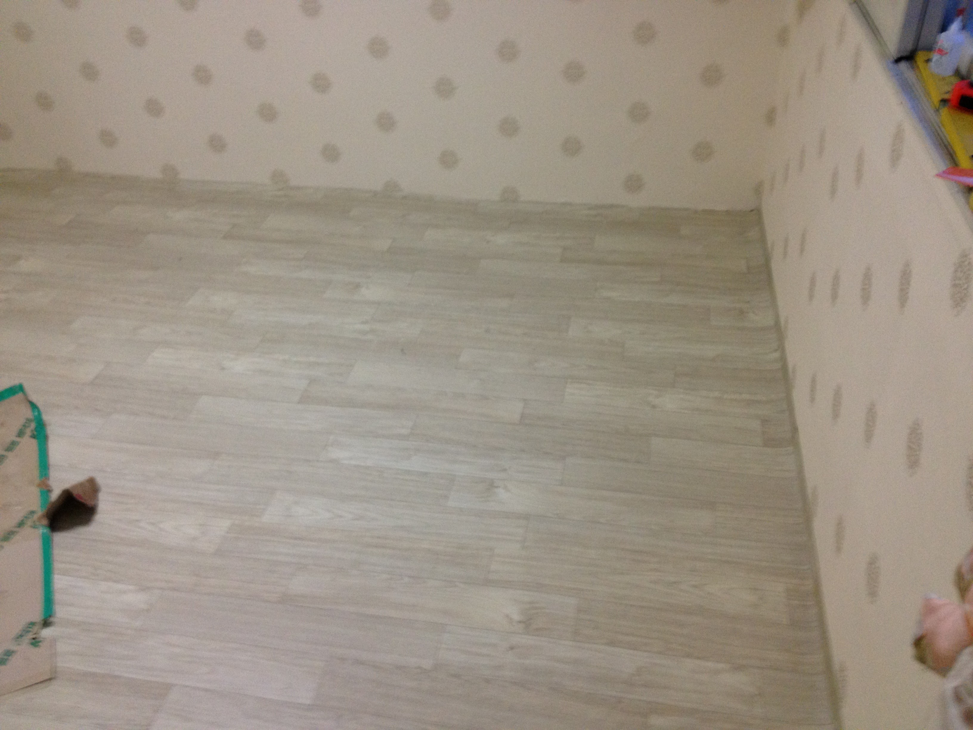 그런뒤 잘려나간 장판을 떼네면 사진과 같이 깔끔하게 무늬가 연결됩니다.