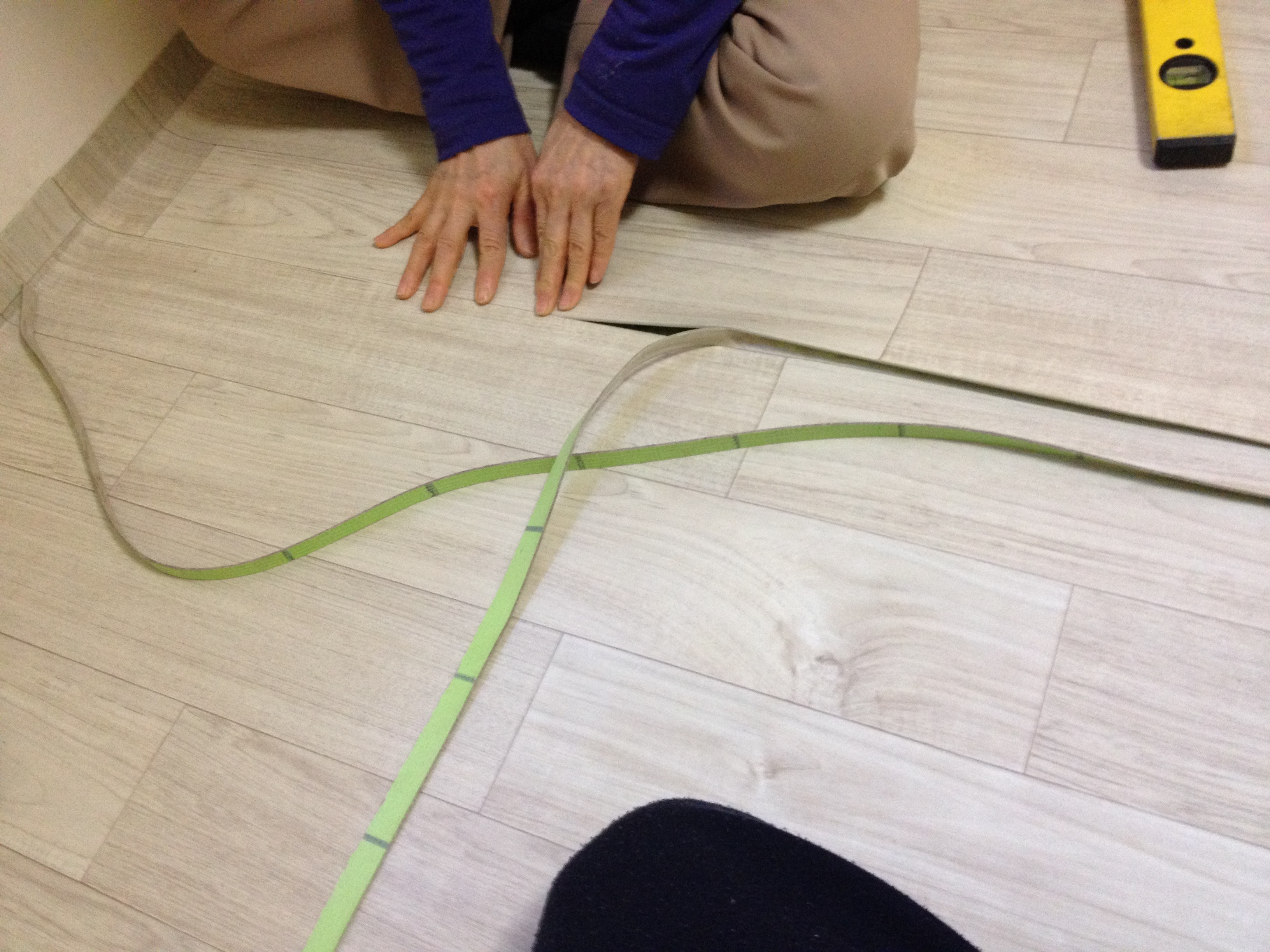 두개의 장판을 무늬에 맞게 딱 겹쳐놓고 아주 딱딱한 자를 대놓고