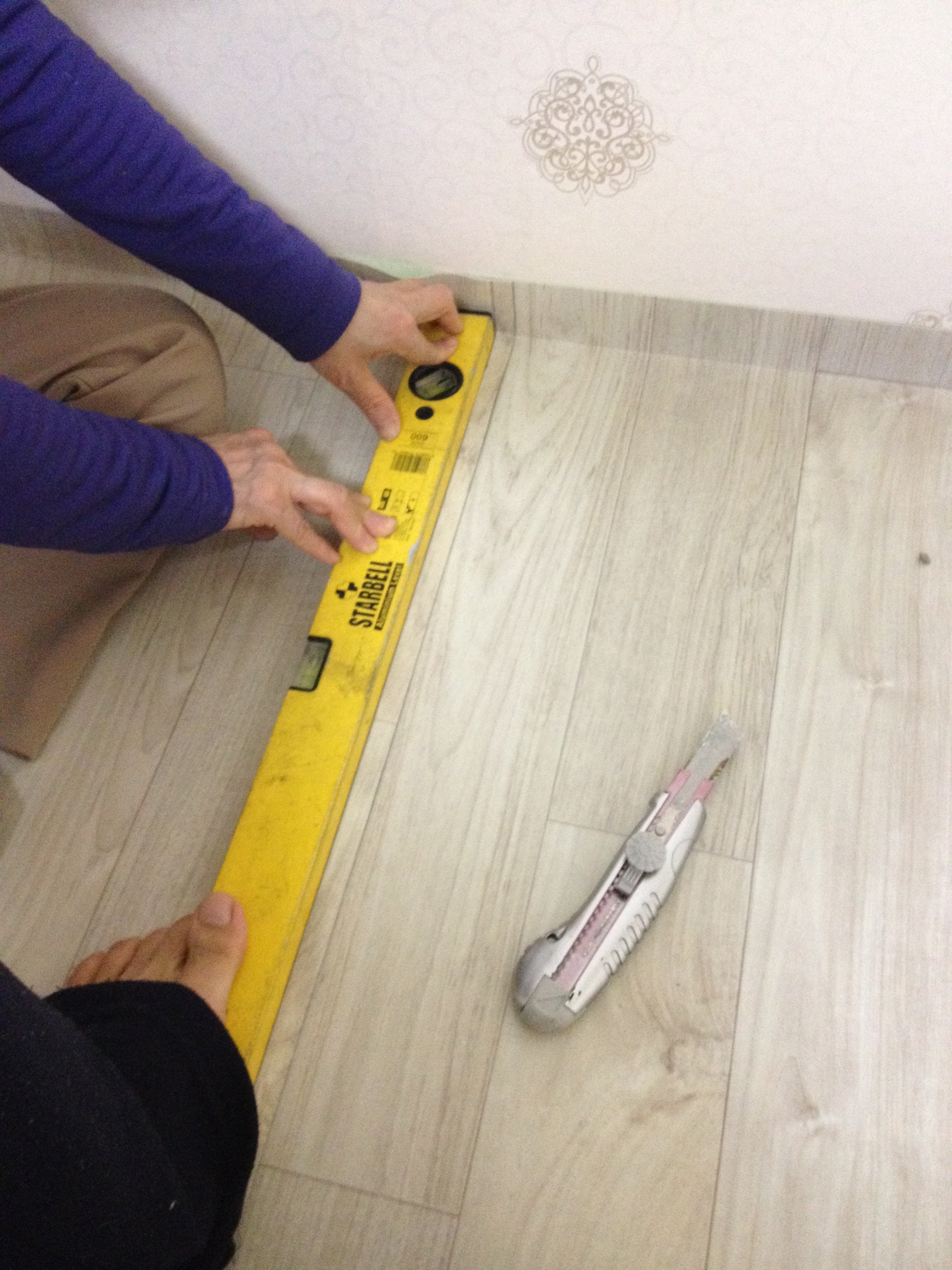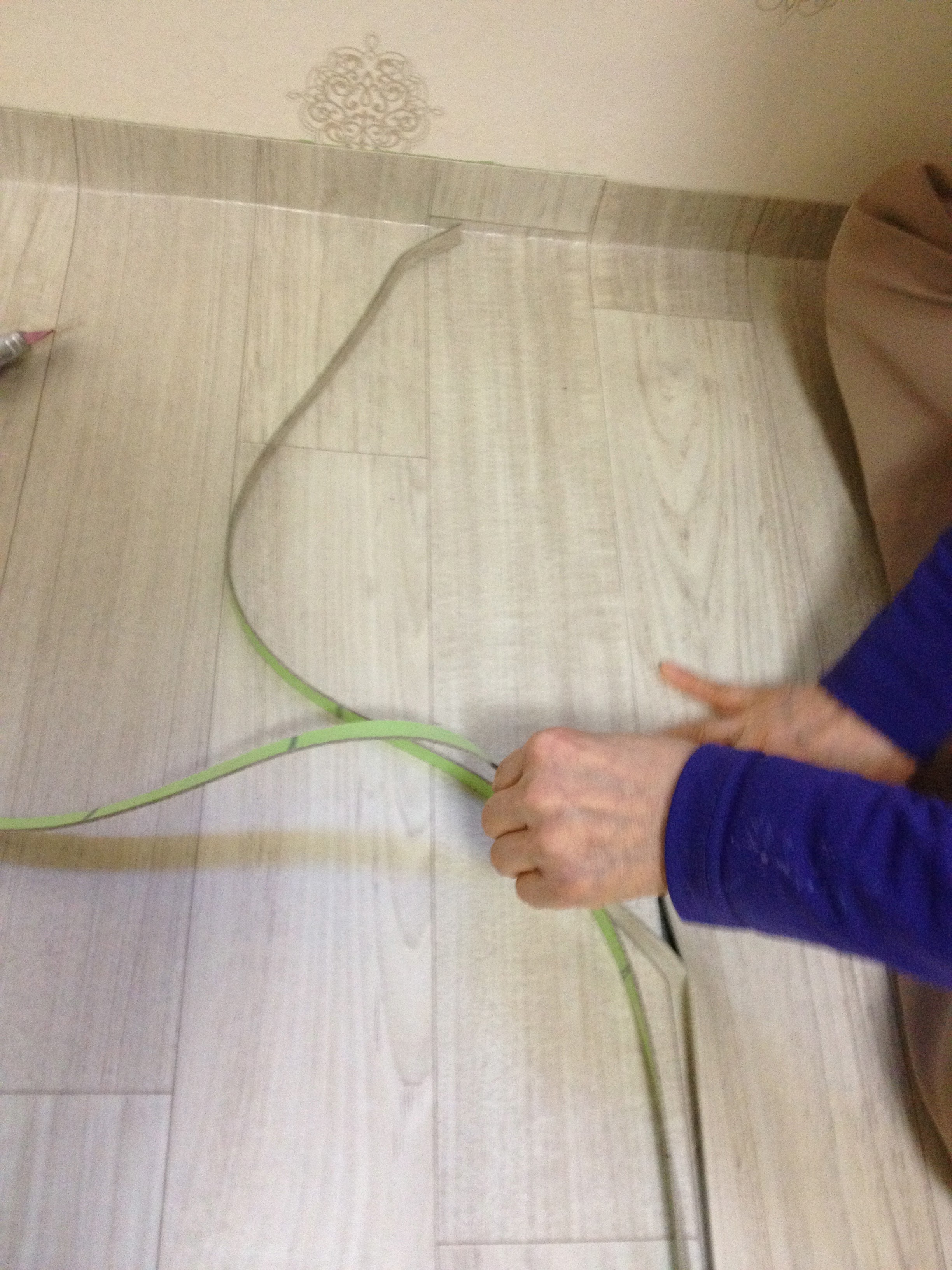 두개의 장판을 무늬에 맞게 딱 겹쳐놓고 아주 딱딱한 자를 대놓고
