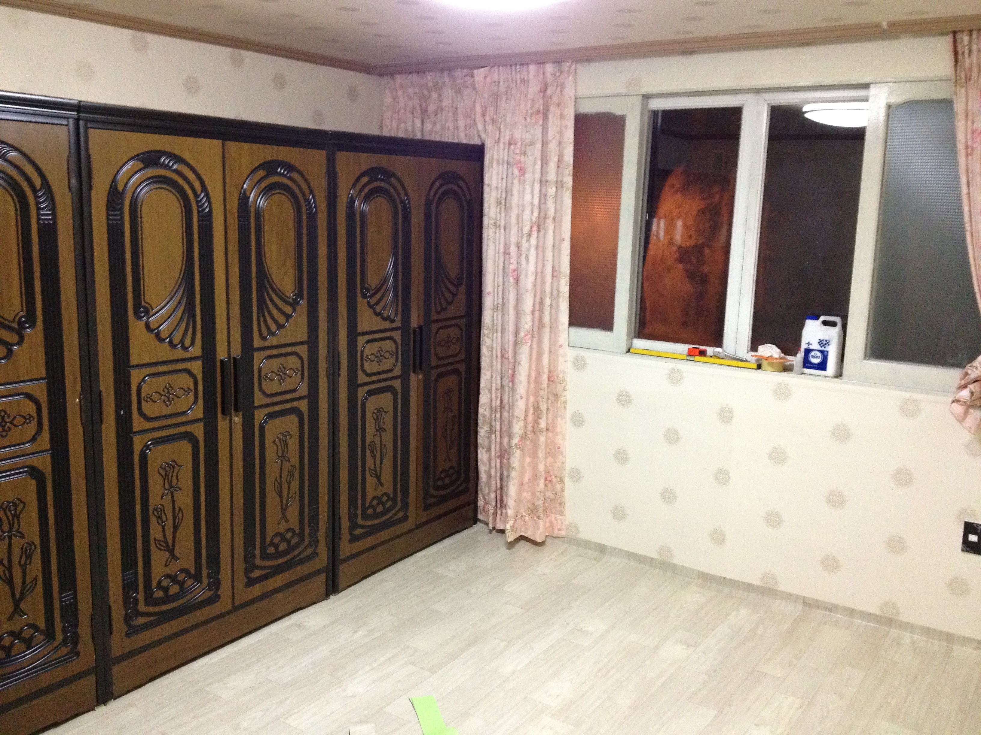 방문밖에 살짝 보이지만 장판을 깔기위해 장농을 잠시 거실로 빼놨습니다.
