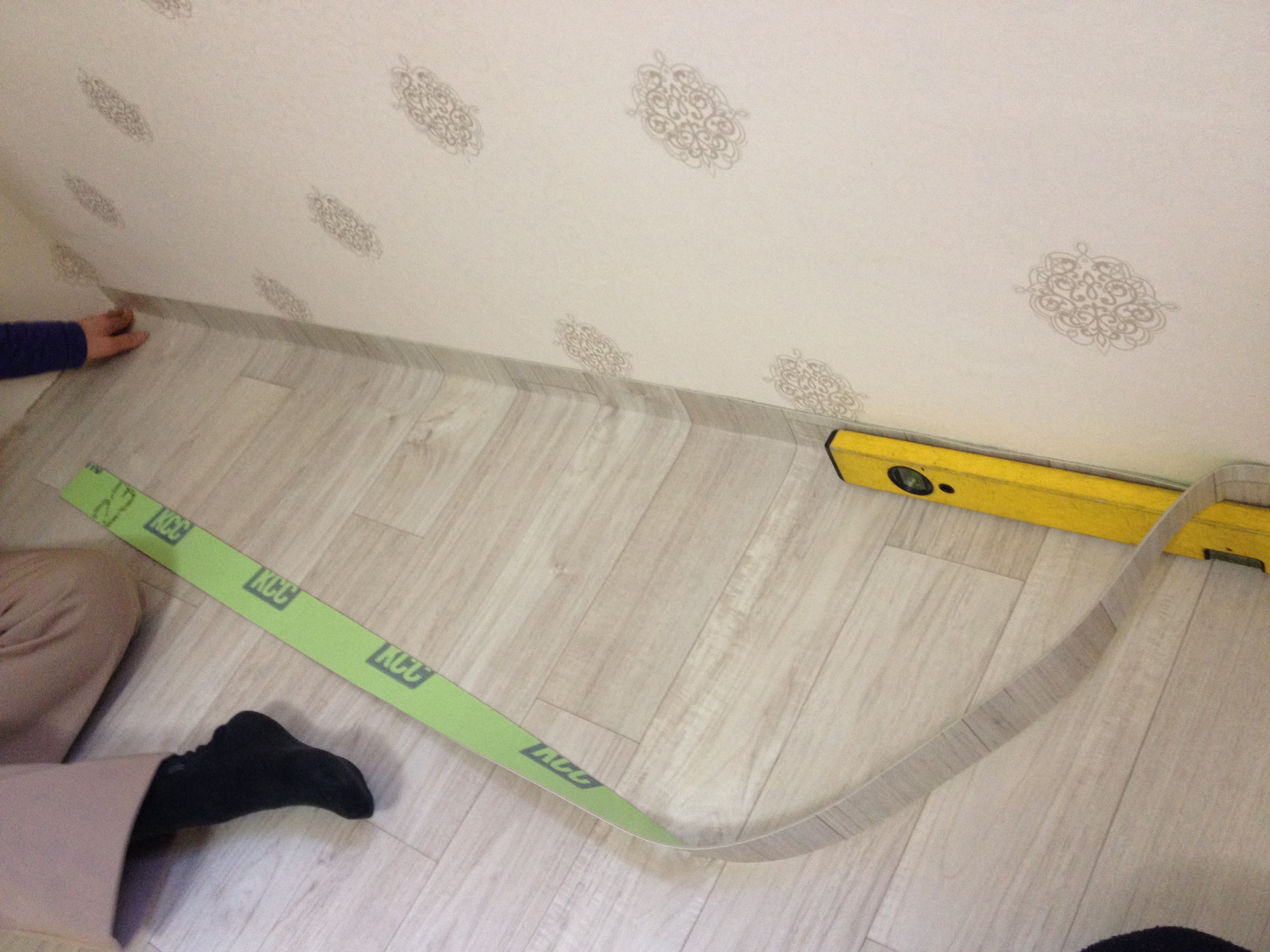 너무 딱맞게 깔려서 굽도리를 깔아줬습니다.