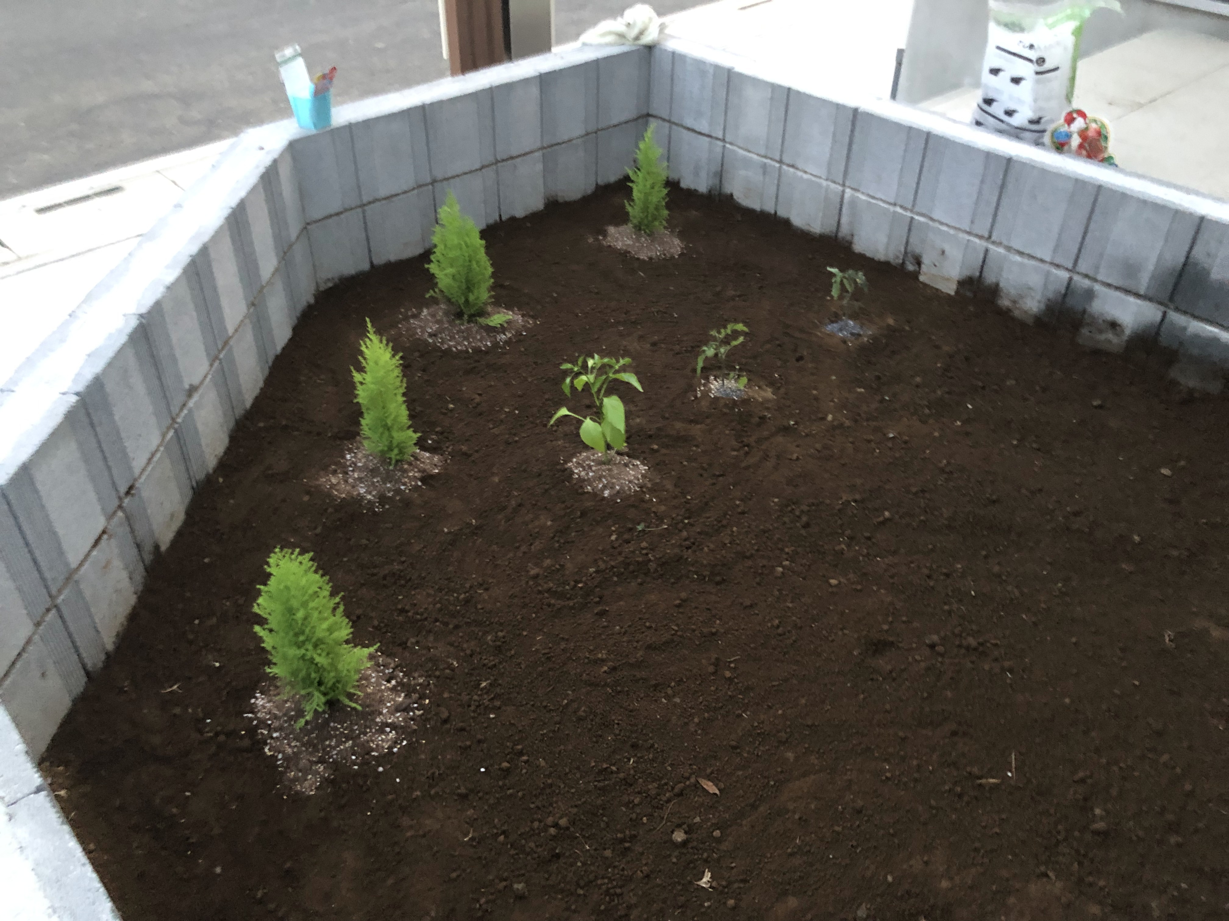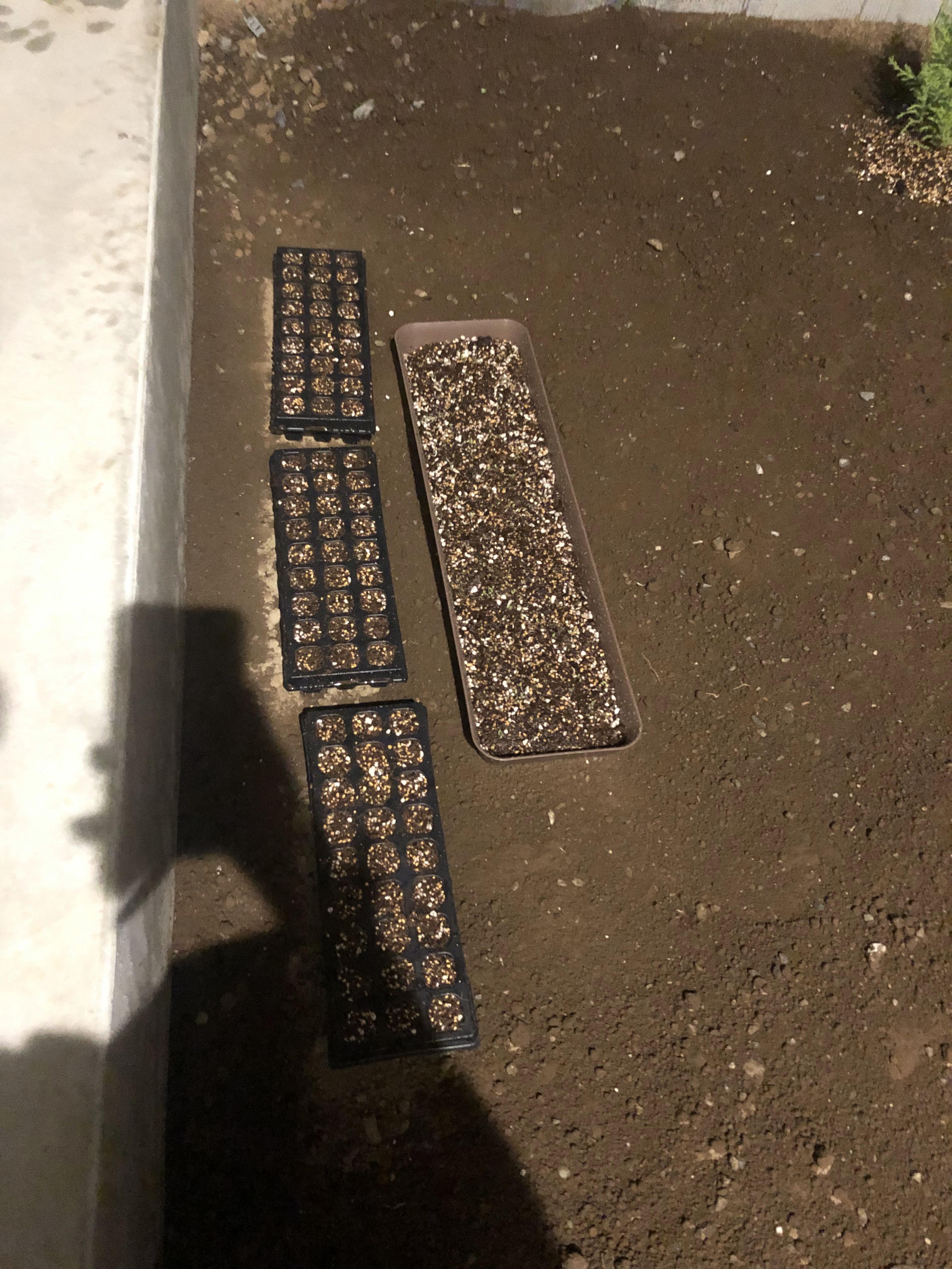 안돼겠다 싶어서 우선 화단 물받이에 영양토를 깔고 그 위에 뿌려주기로 했습니다.