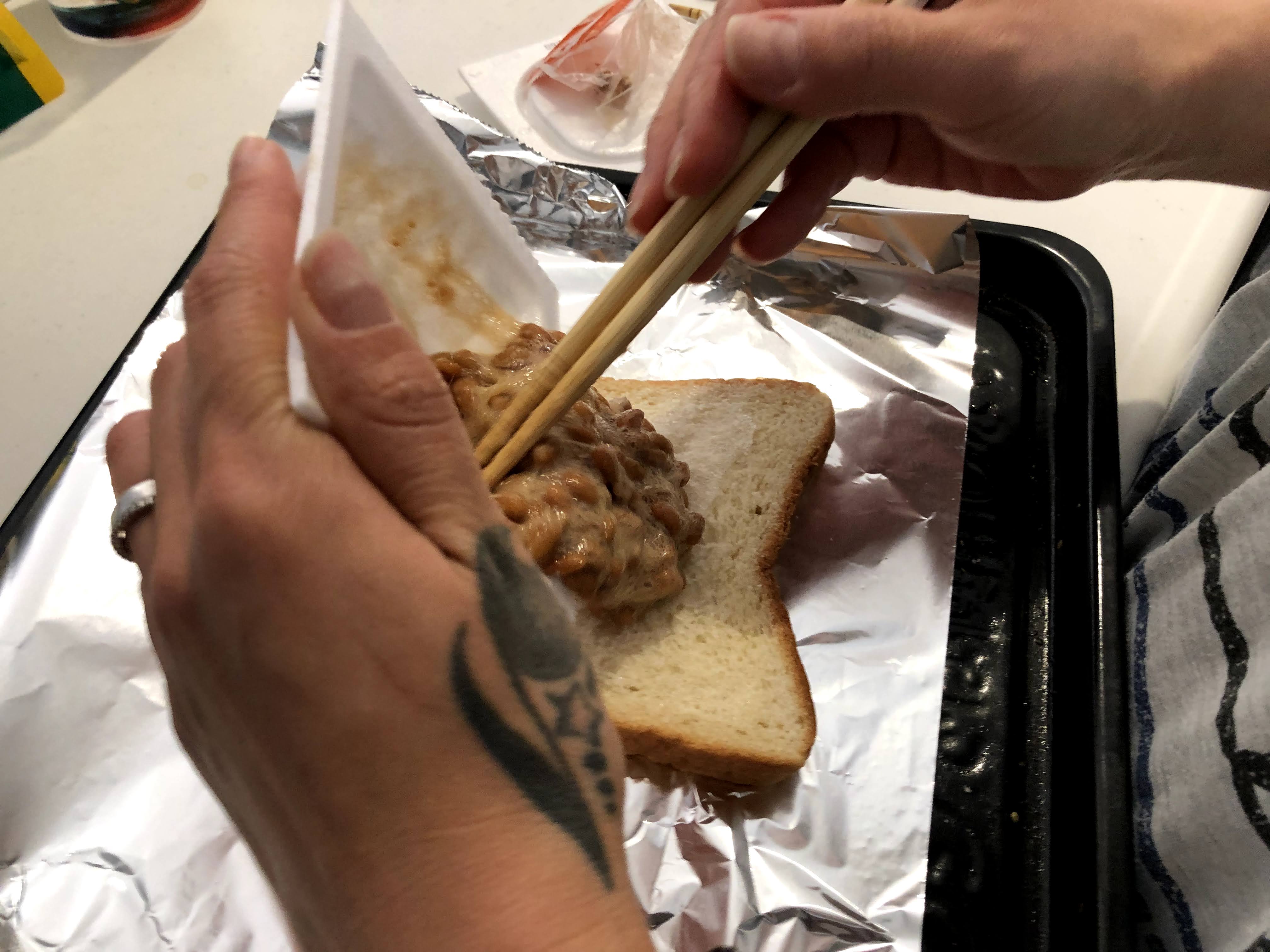 아... 제목이 뭐였죠? 그래요... 낫또 치즈 토스트입니다.