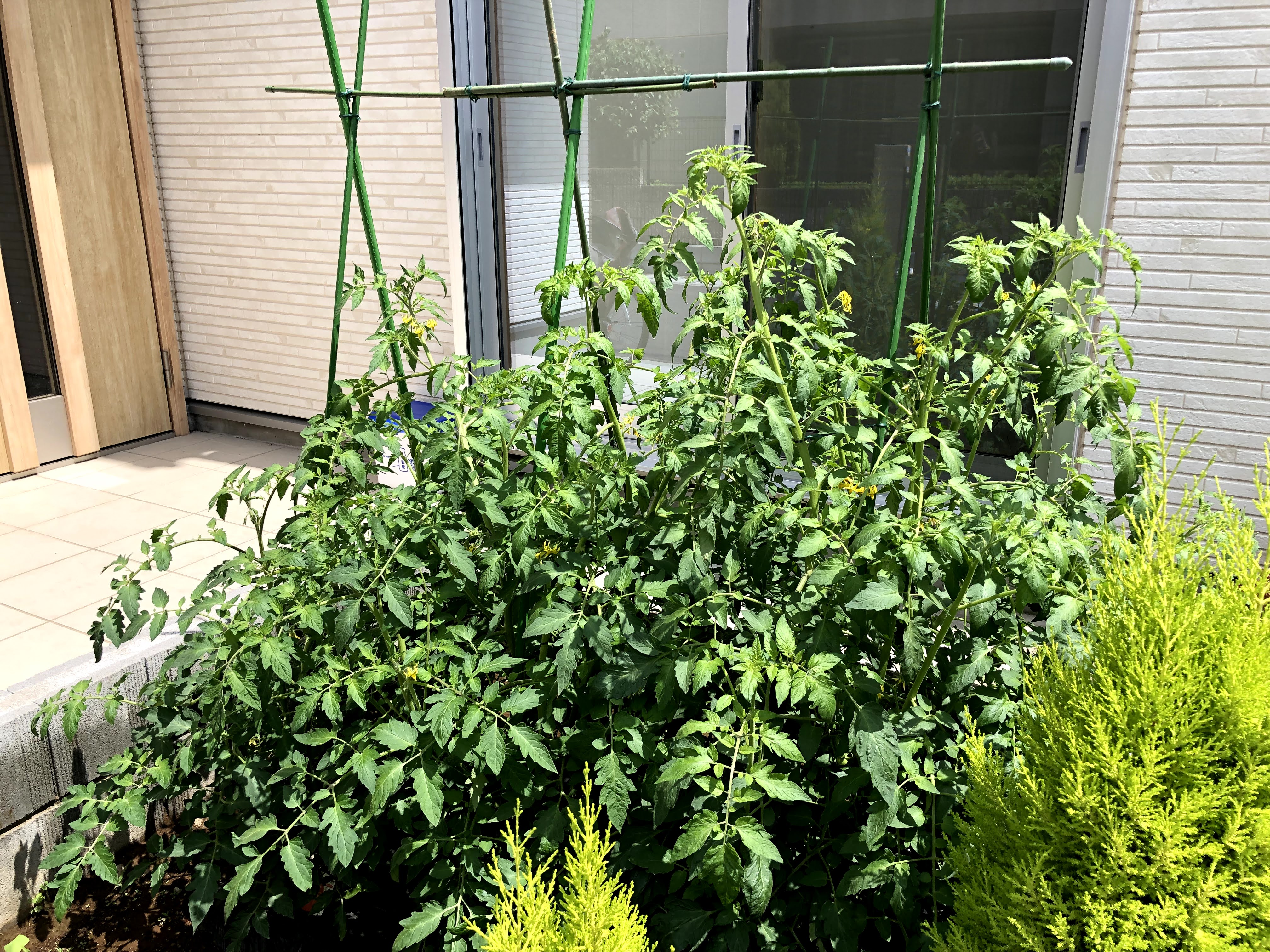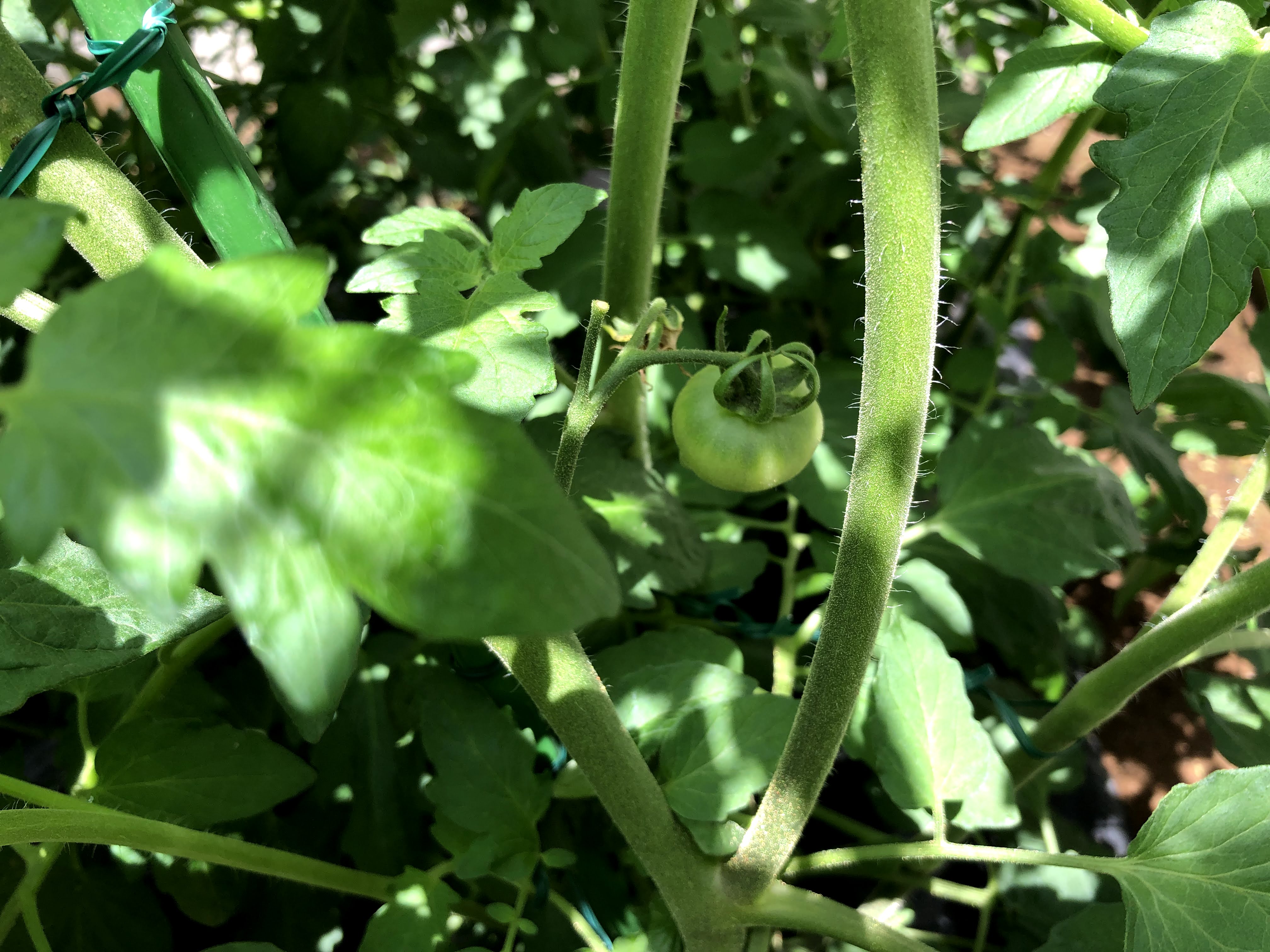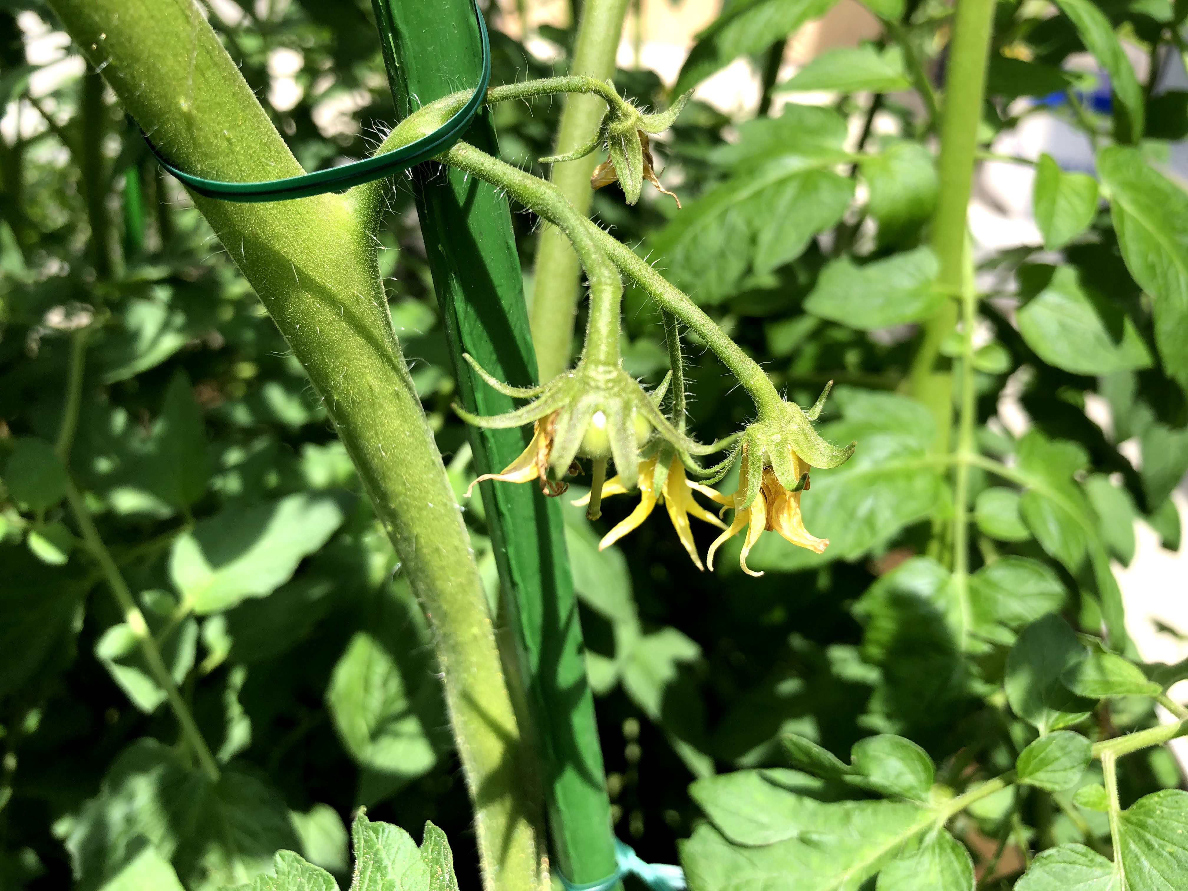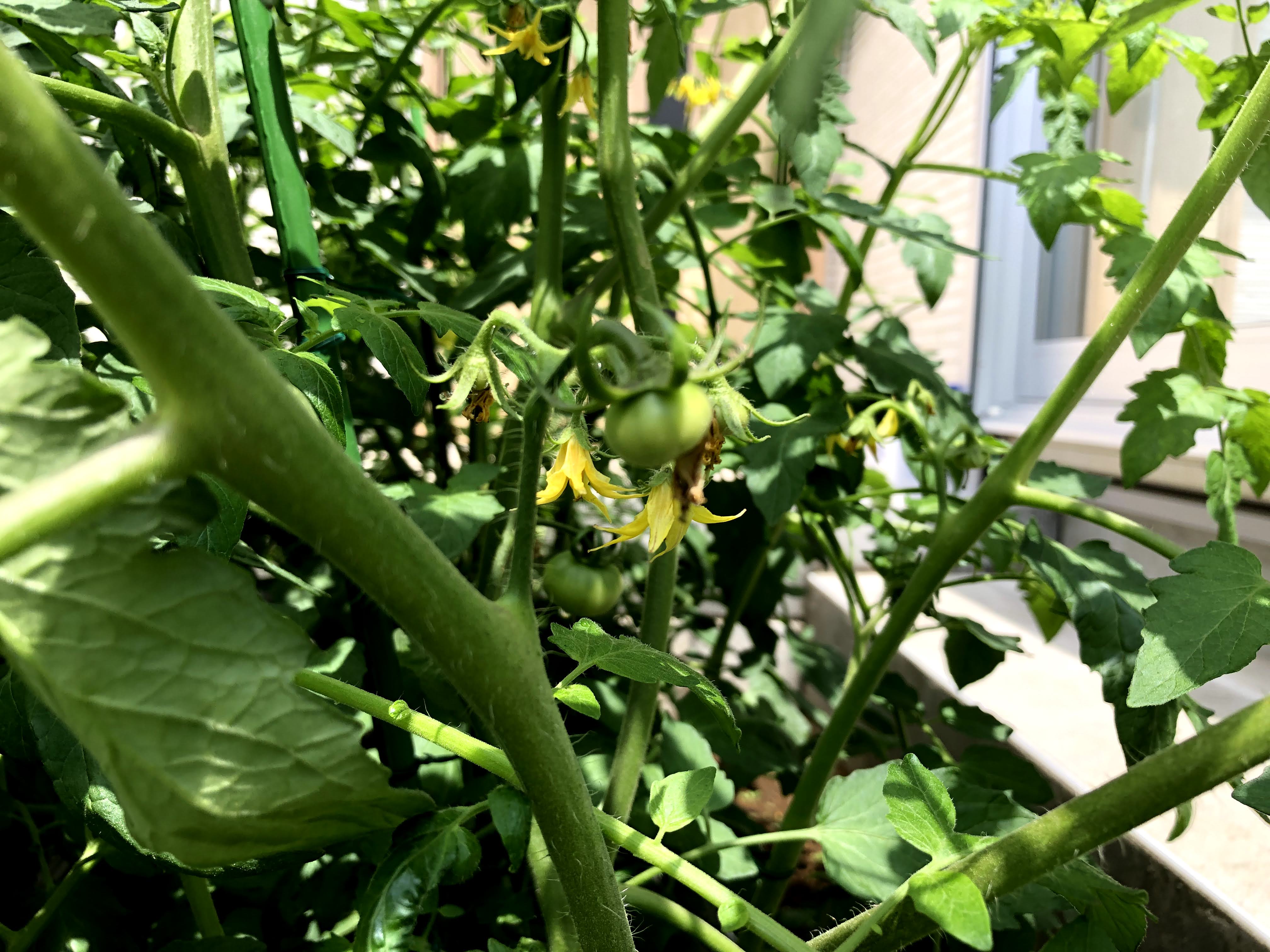 가장 성장 빠른 토마토의 줄기가 지지대의 가장 윗부분을 넘어버렸습니다.....