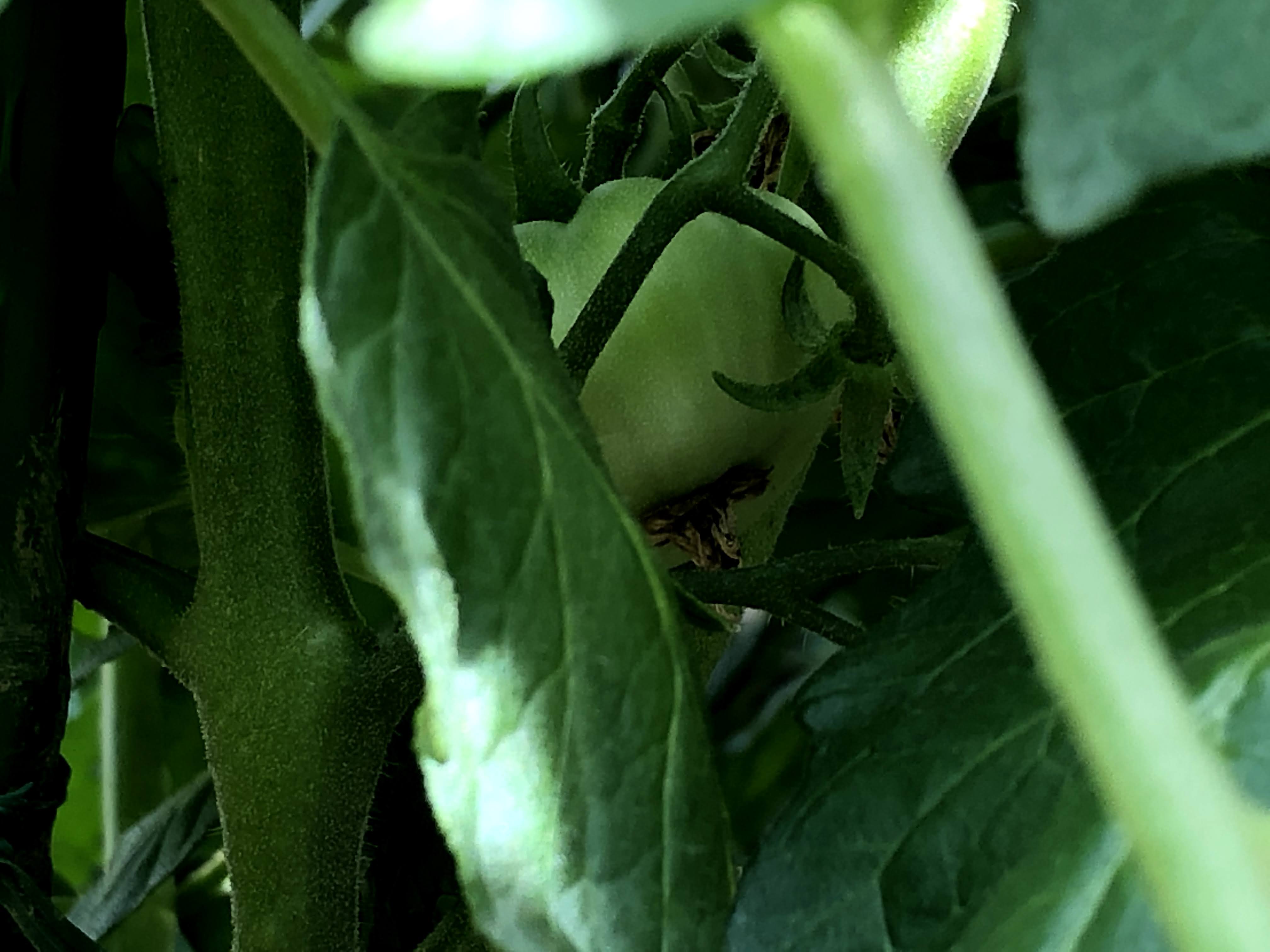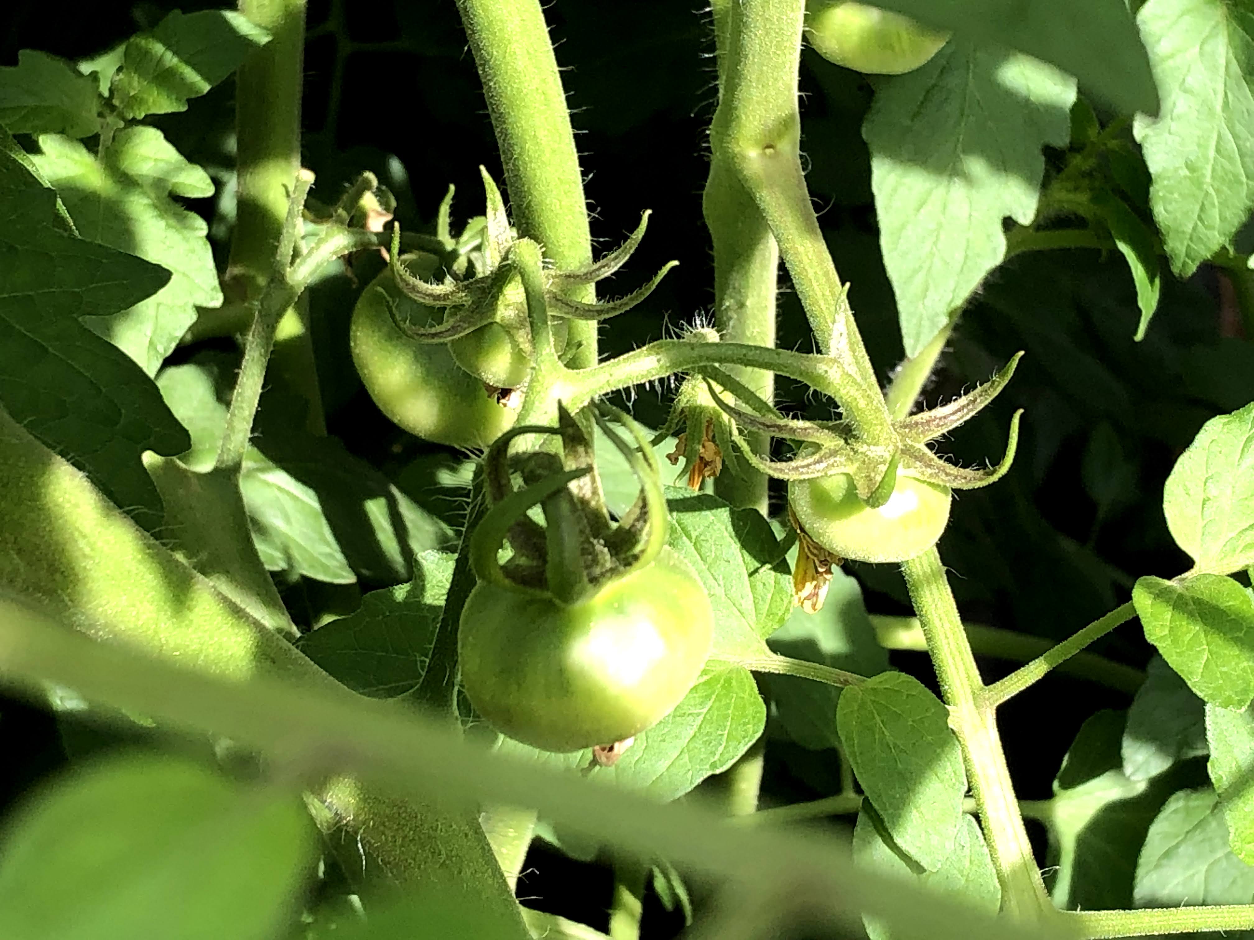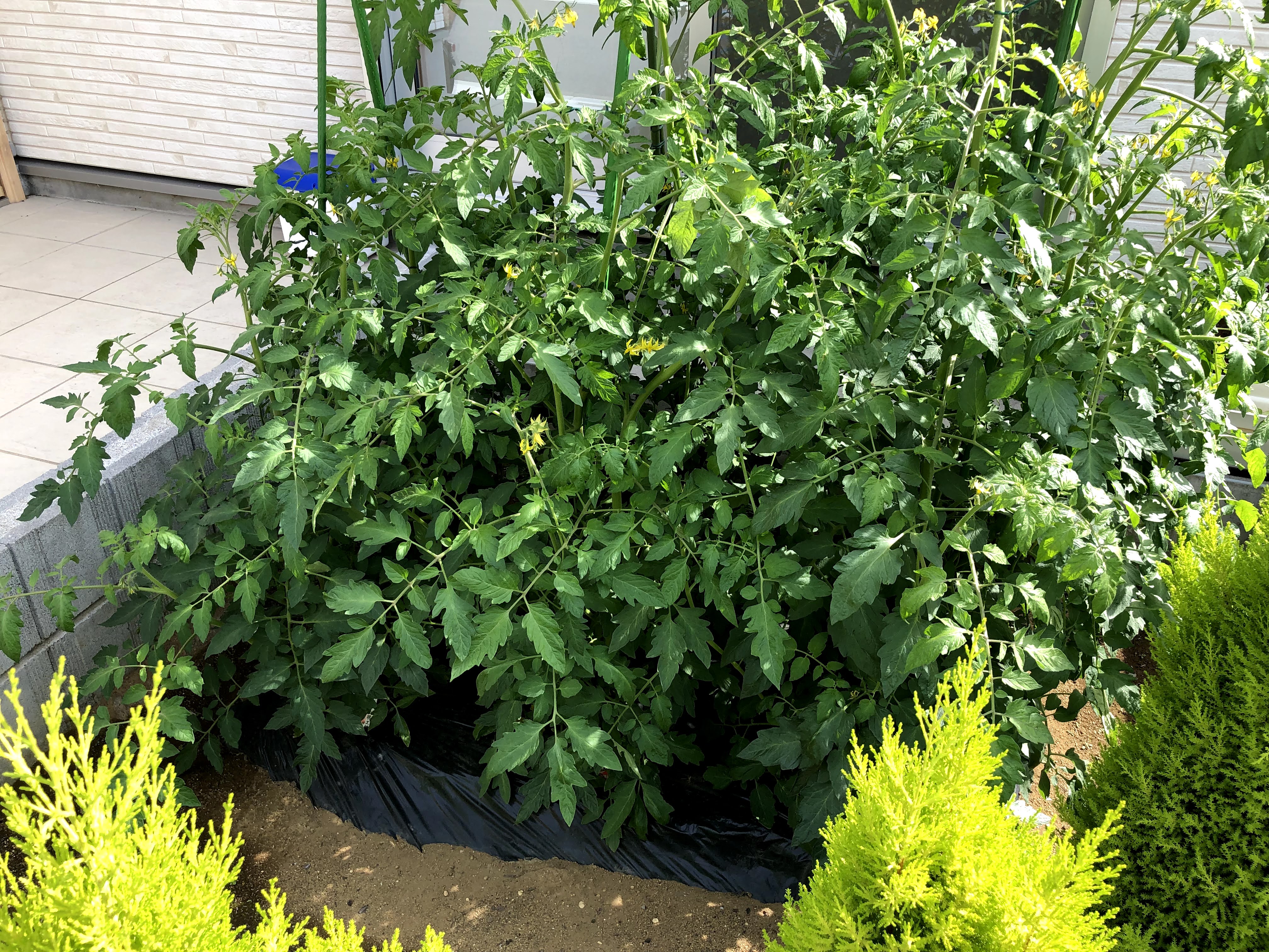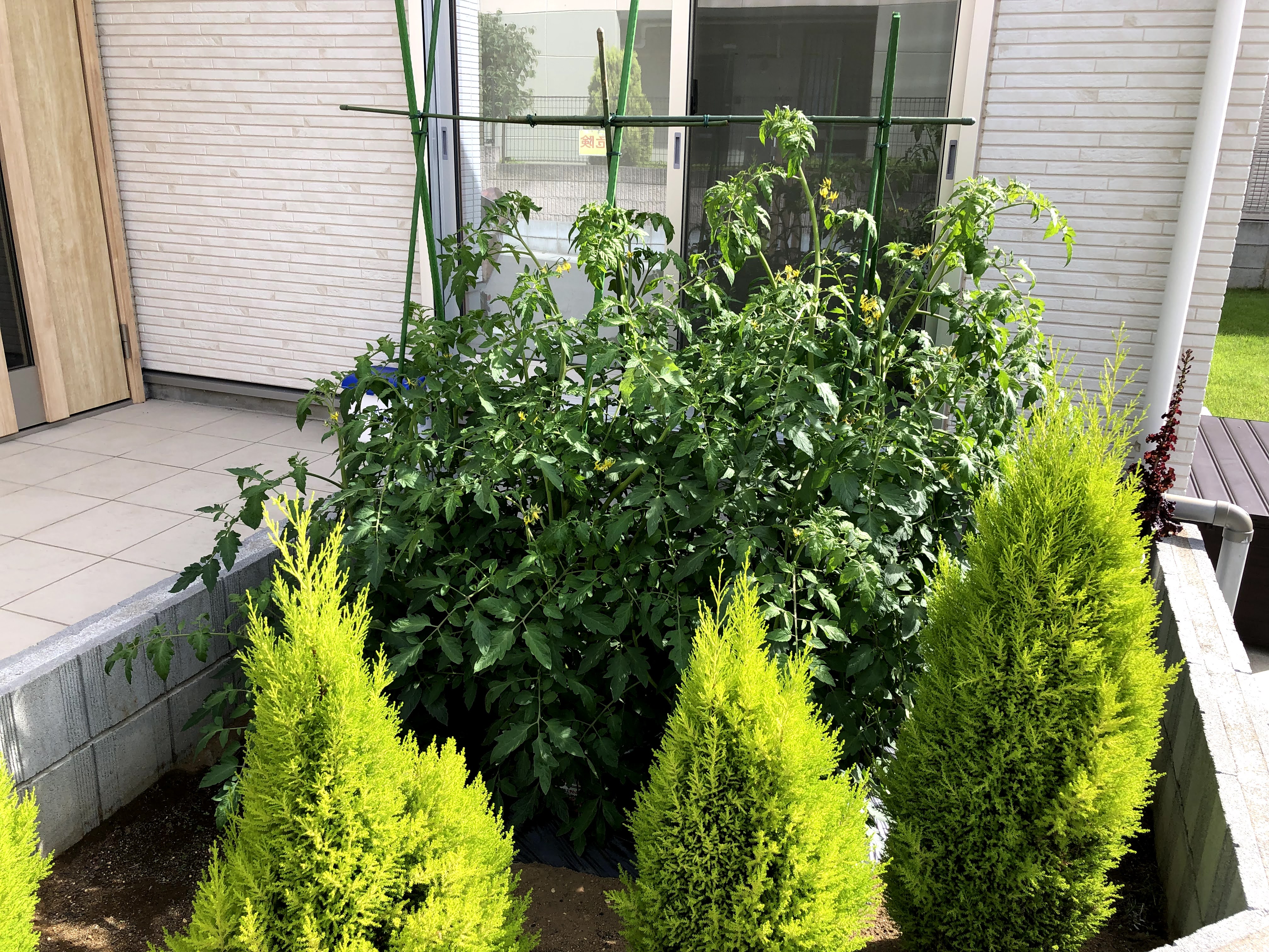 가장 성장 빠른 토마토의 줄기가 지지대의 가장 윗부분을 넘어버렸습니다.....