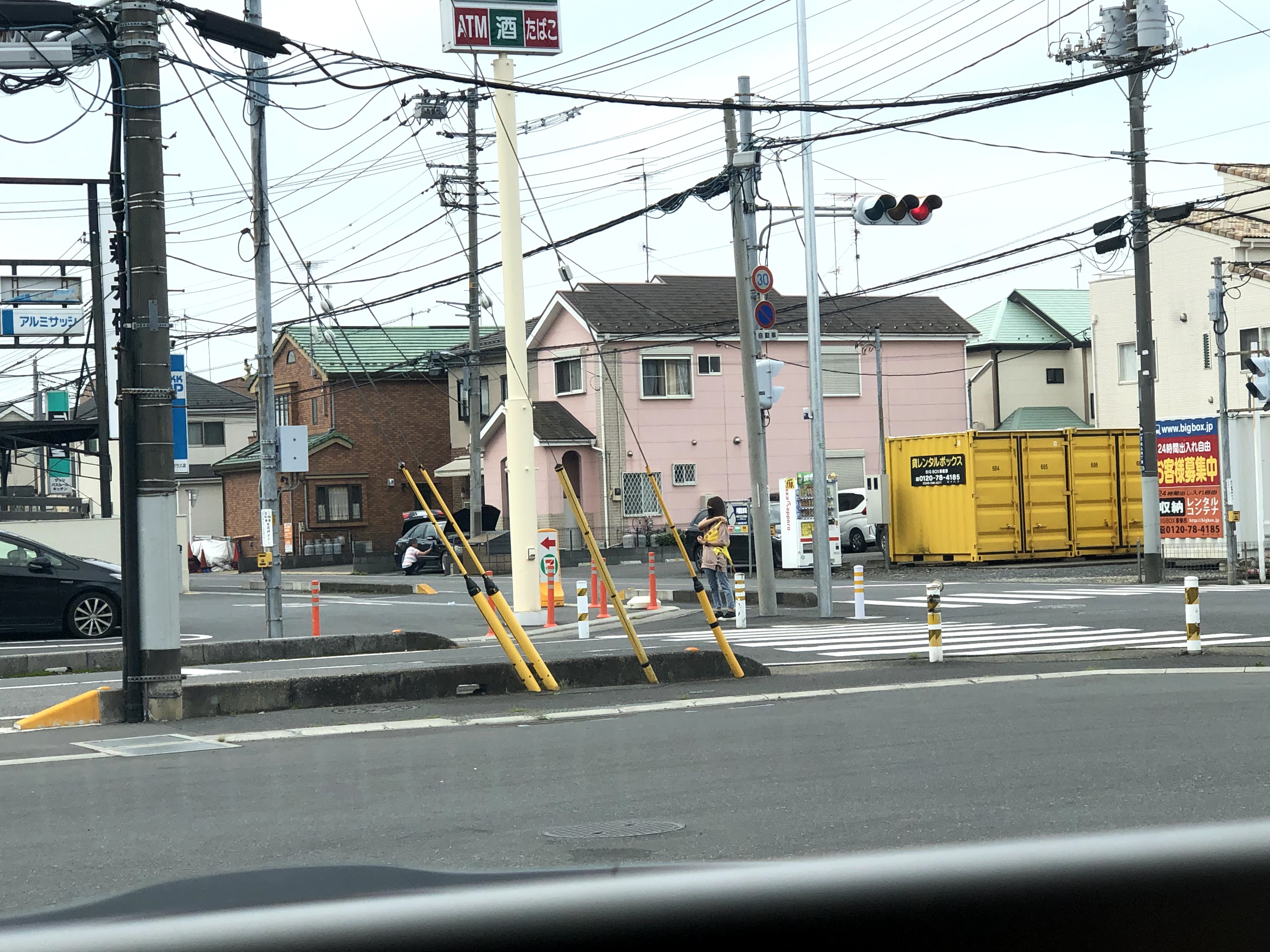 세븐일레븐 간판밑 오른쪽에서 카즈미가 확인을 합니다.