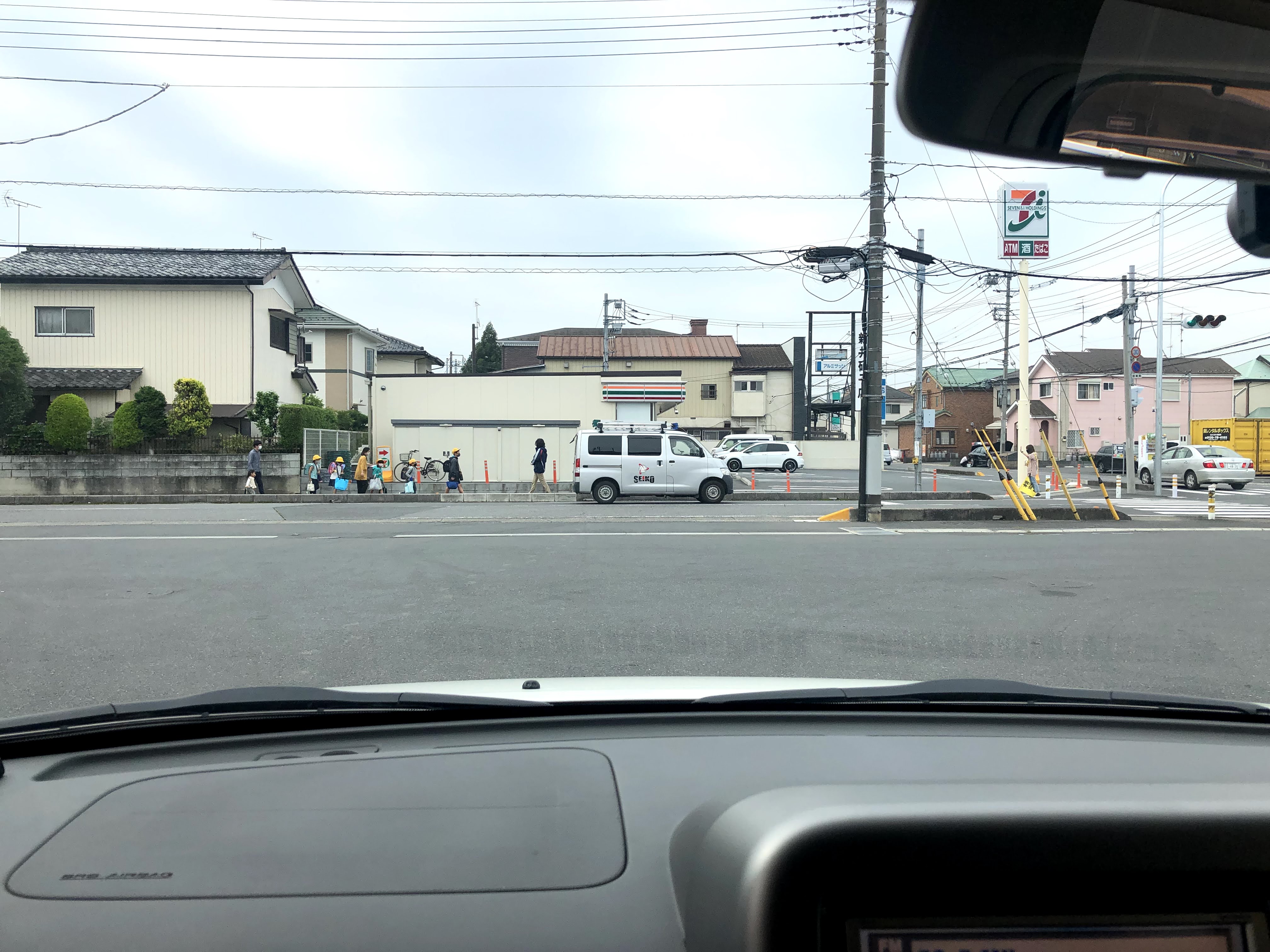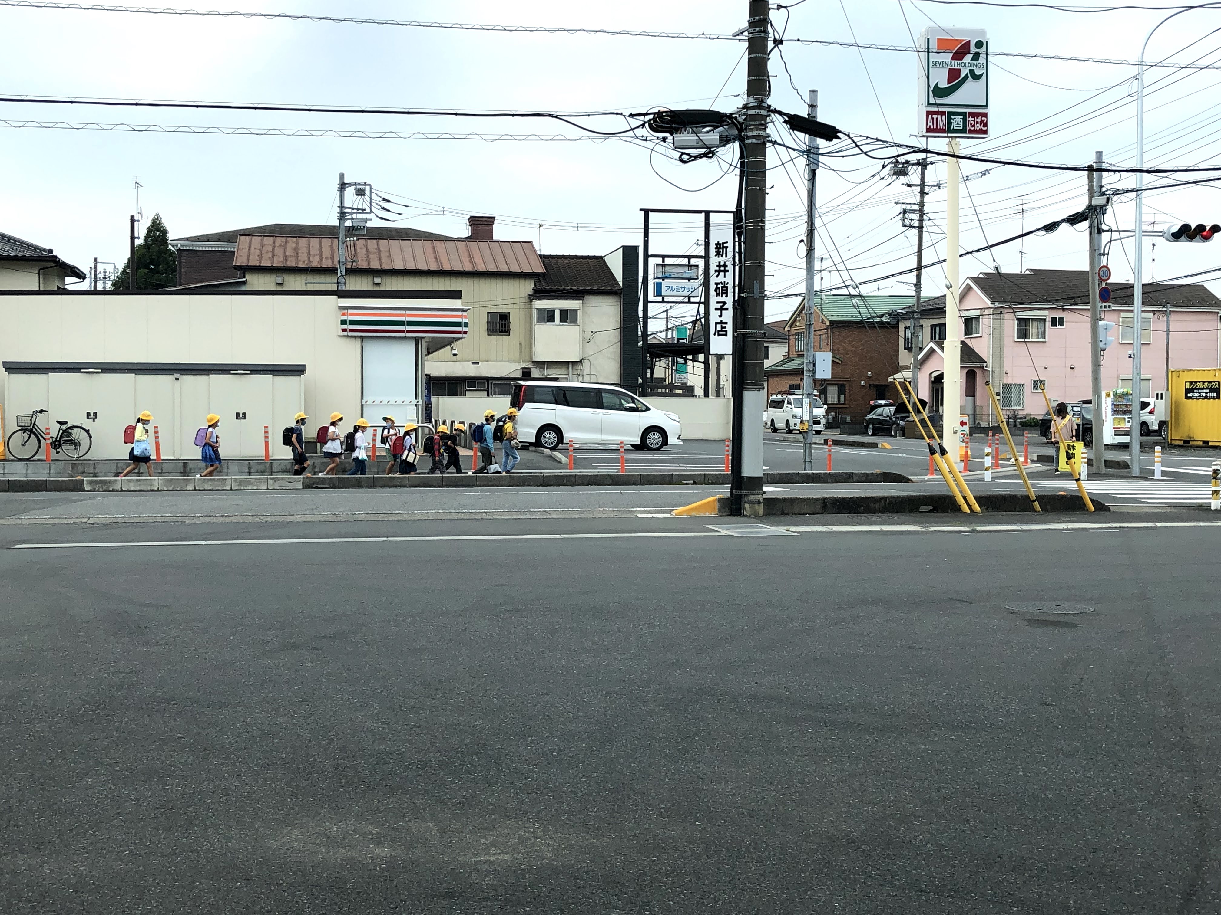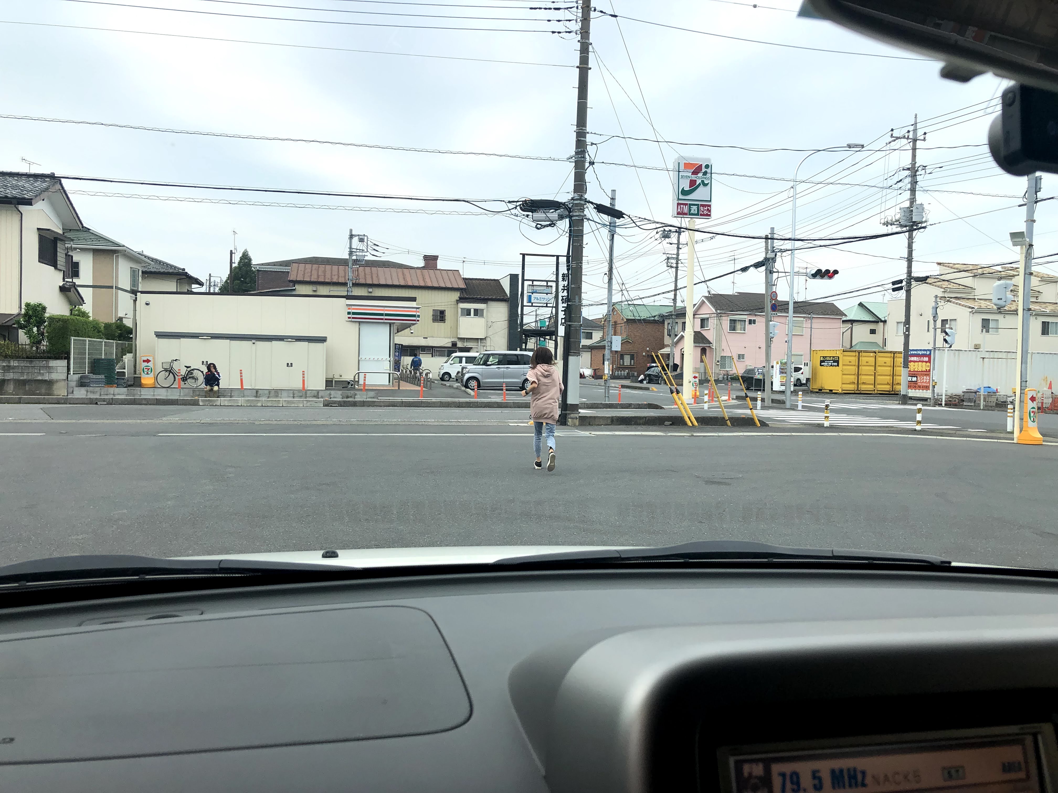 세븐일레븐 간판밑 오른쪽에서 카즈미가 확인을 합니다.
