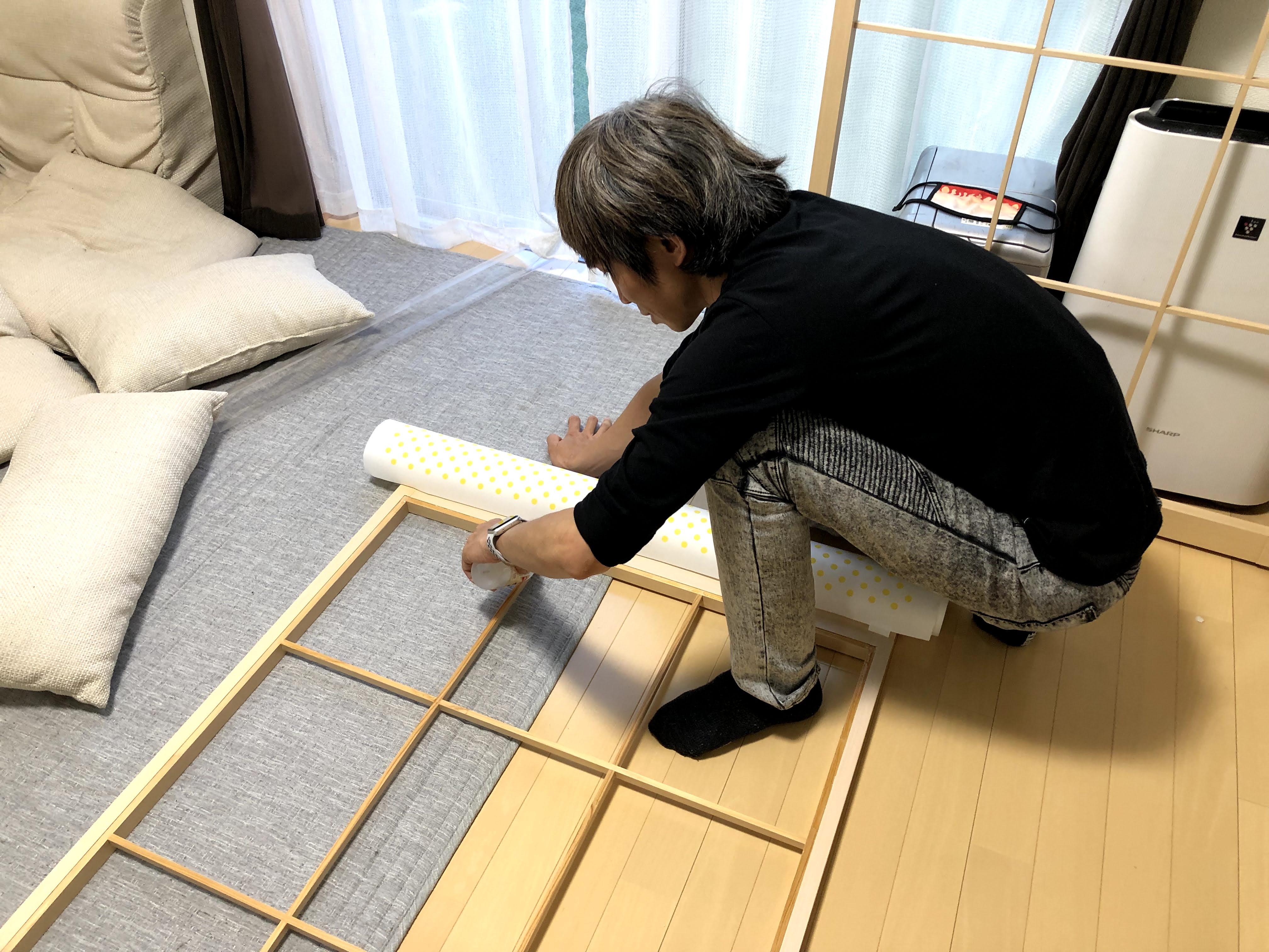 흔하게 볼 수 없는 일본의 창호지 작업이였습니다. ㅋㅋㅋ