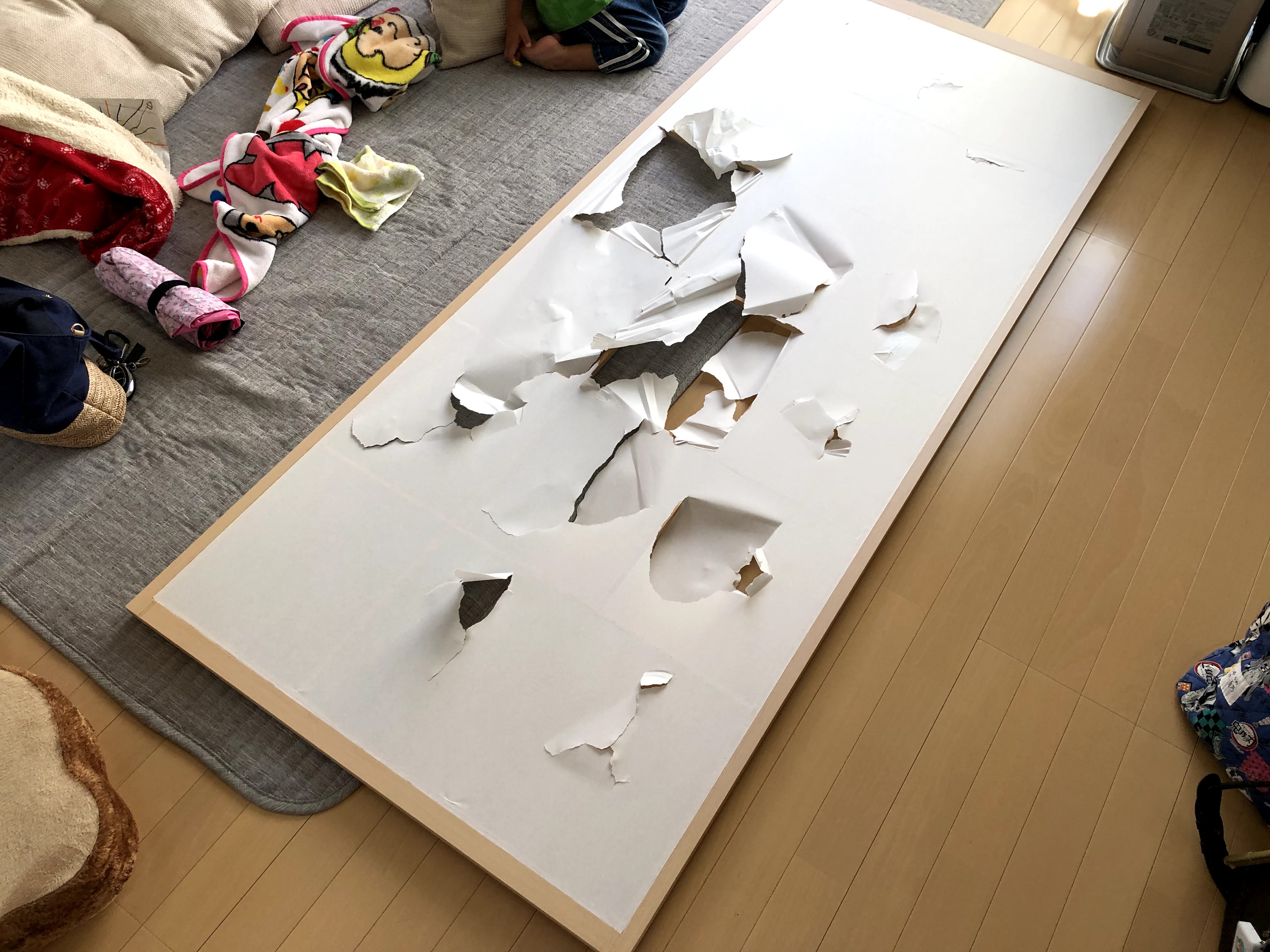 애들이 신나게 구멍을 뚫은 창호를 분리해서 거실로 가져옵니다.