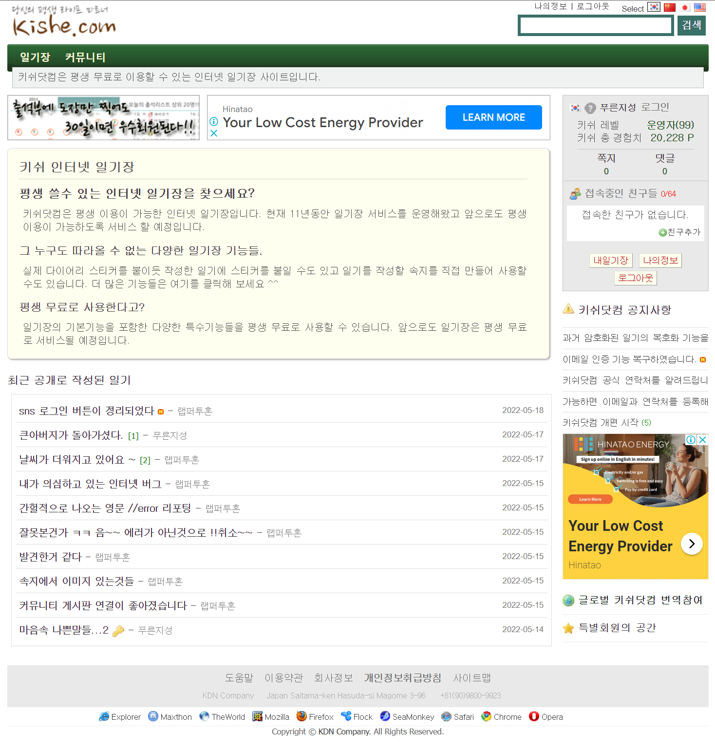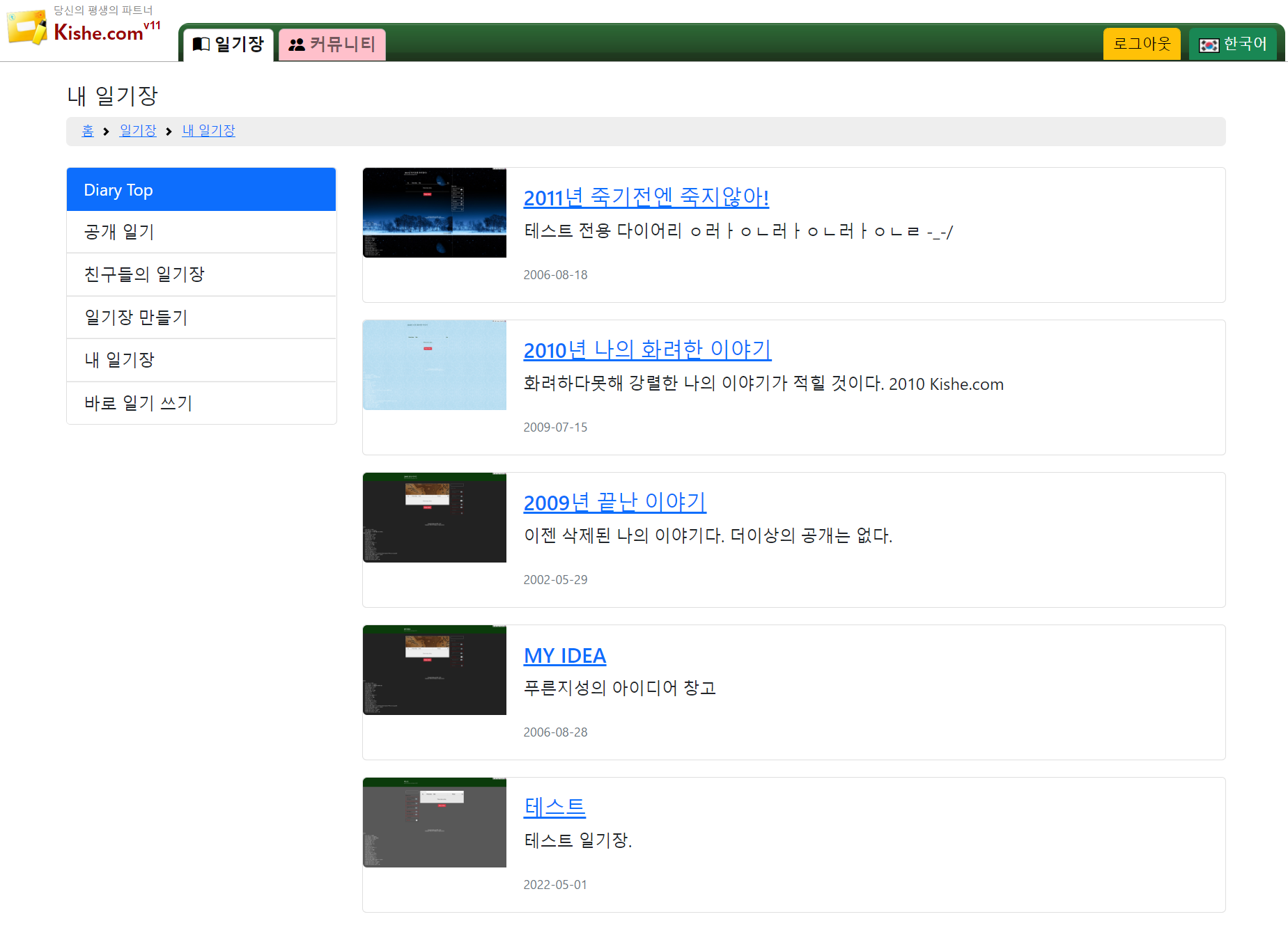 평생 무료로 서비스되고 있는 나만의 일기장 사이트입니다.