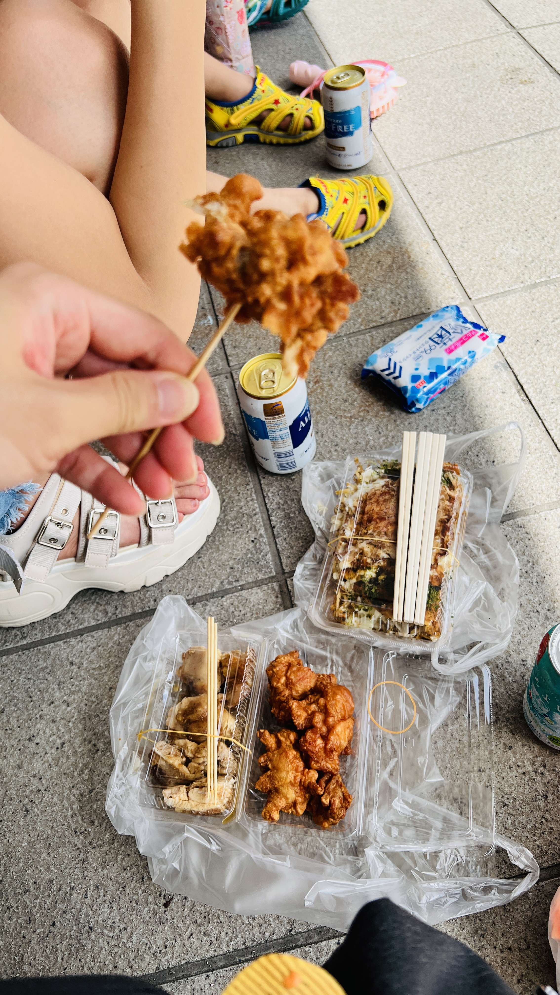 우리는 야끼소바, 카라아게, 치킨스테이크(닭종류 하나 더 샀다고 혼남)를 사왔습니다. ㅋㅋㅋㅋ