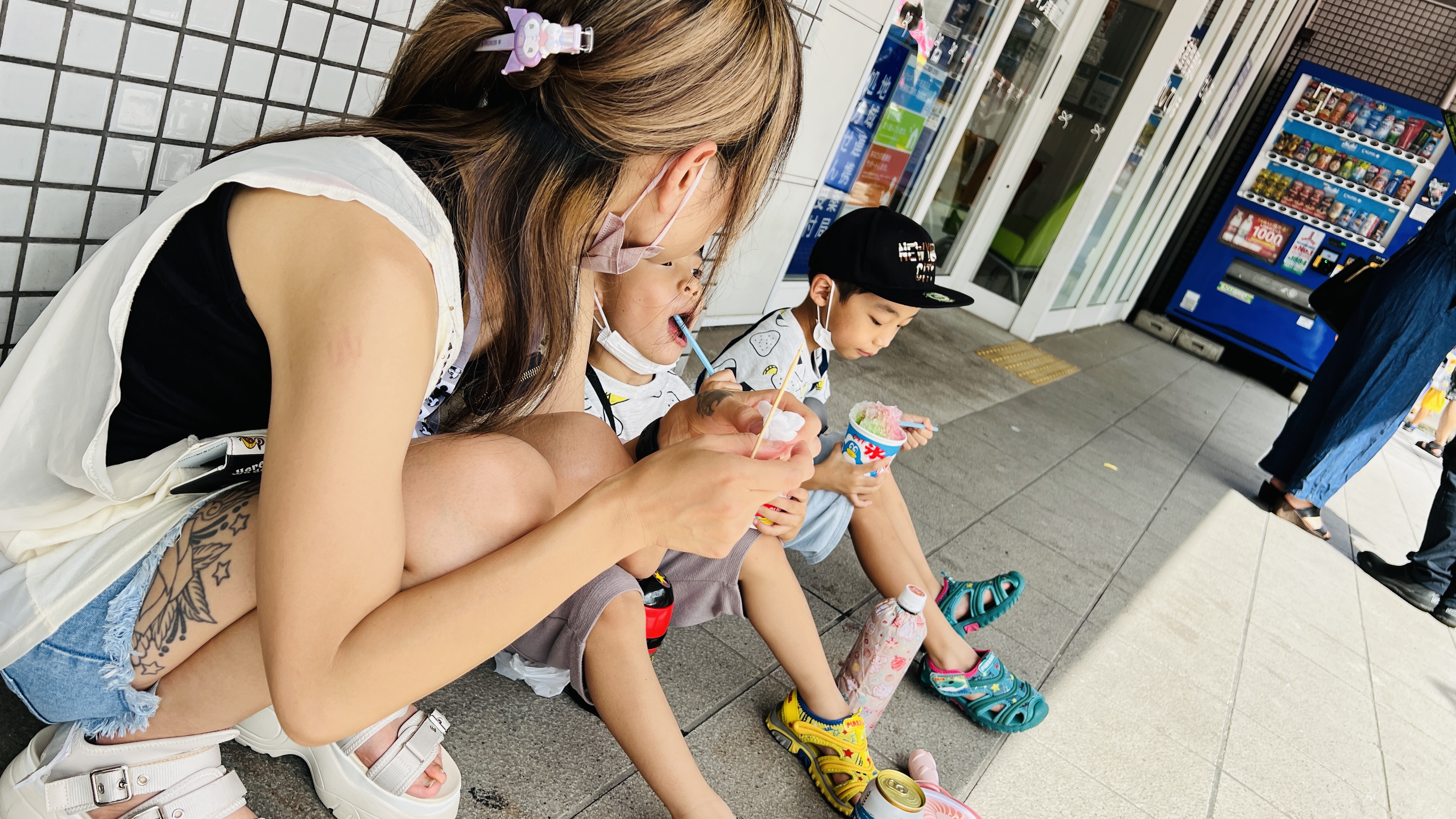 애들 더울까봐 빙수 한컵씩 사왔네요.