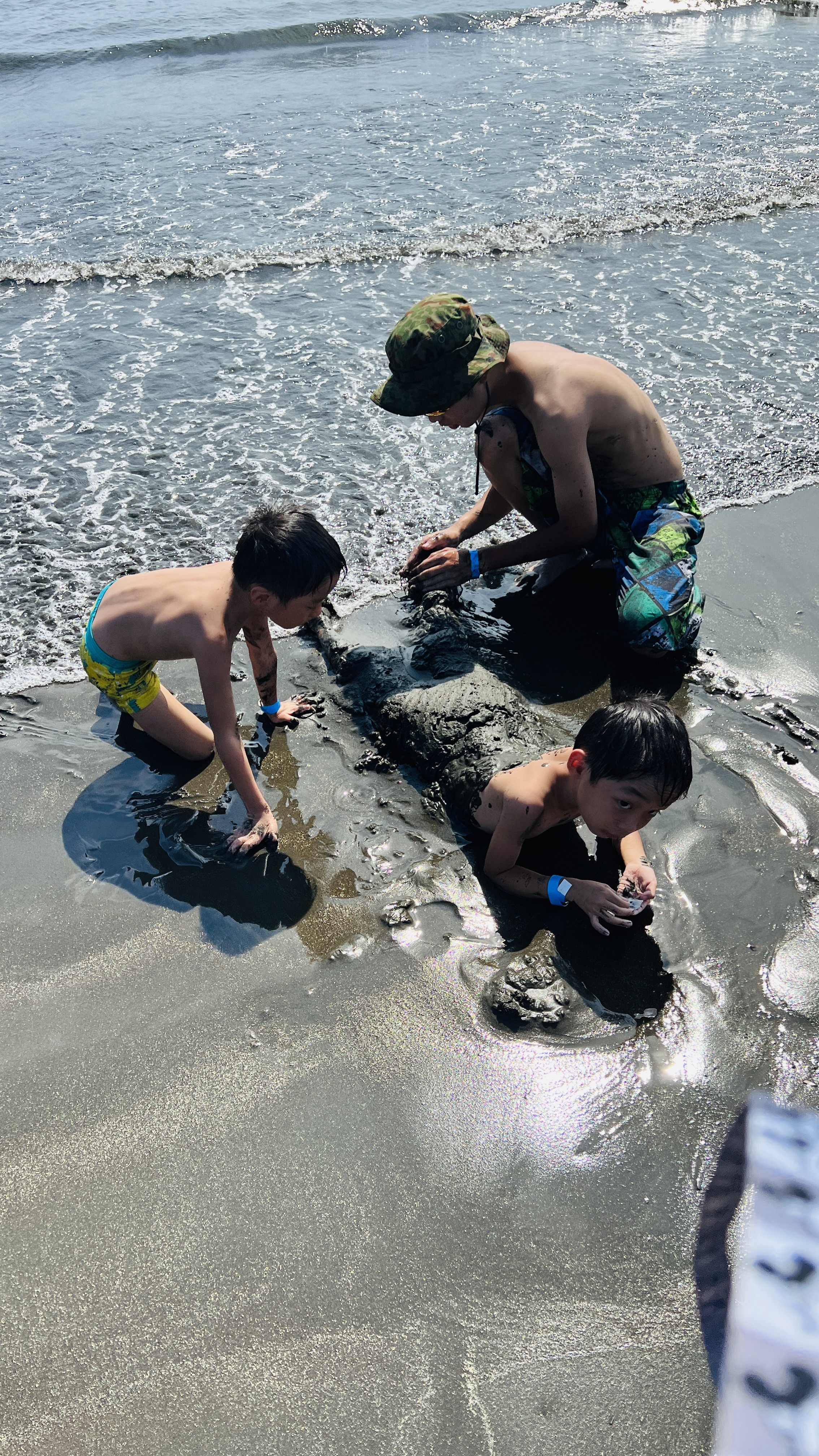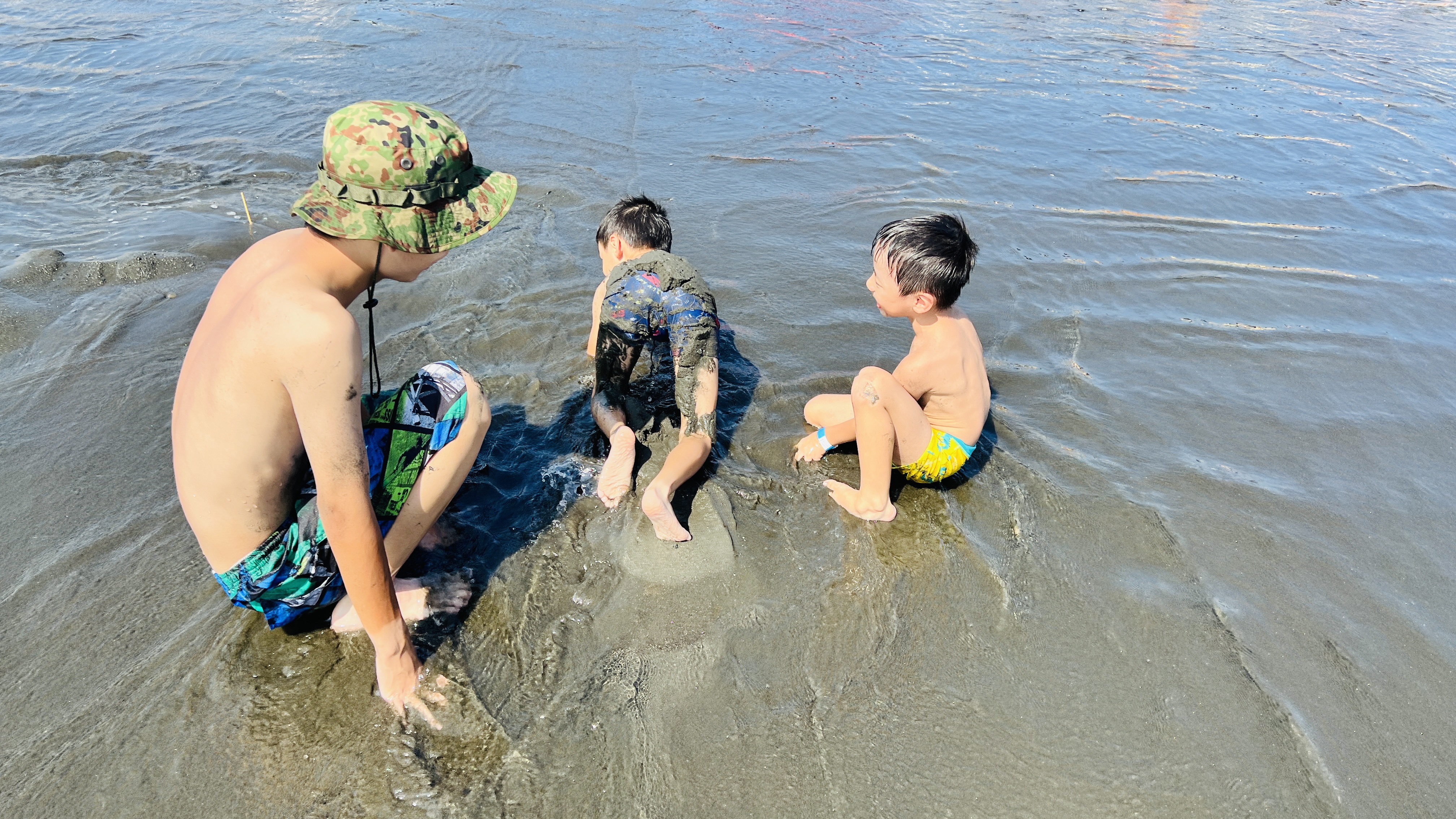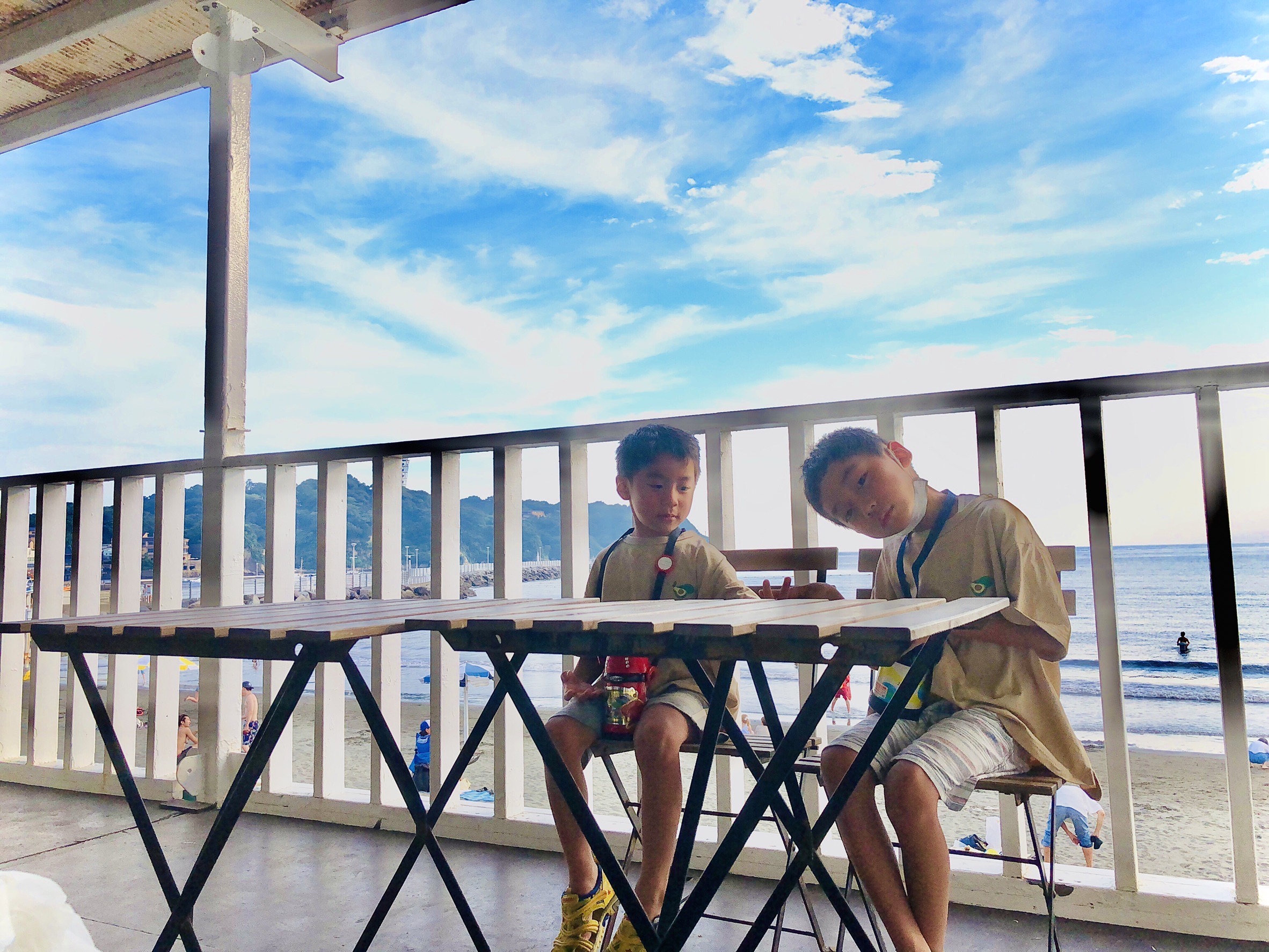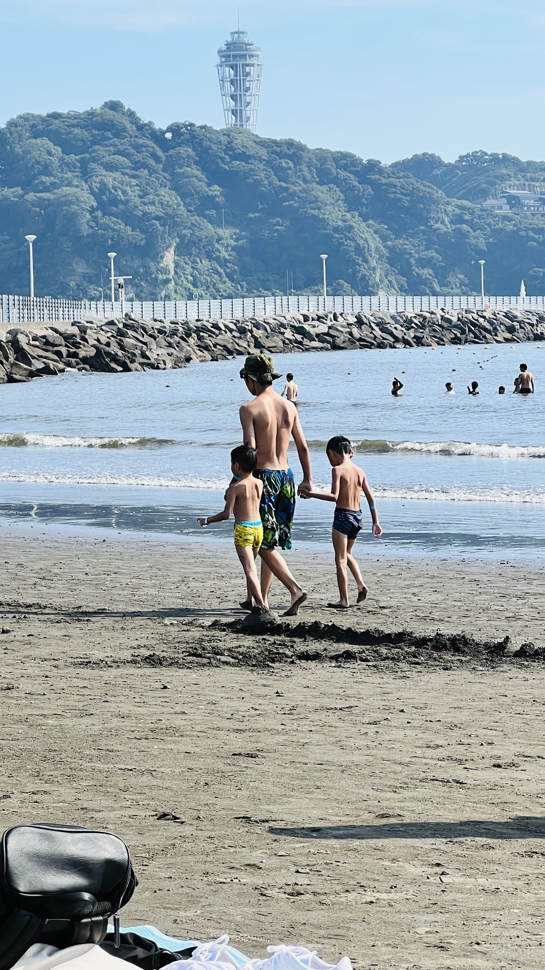 어린이들은 무료로 하고 성인 3명 6000엔내고, 수영복으로 갈아입고, 파라솔을 빌리고, 돛자리를 빌렸습니다. (모두 포함)
