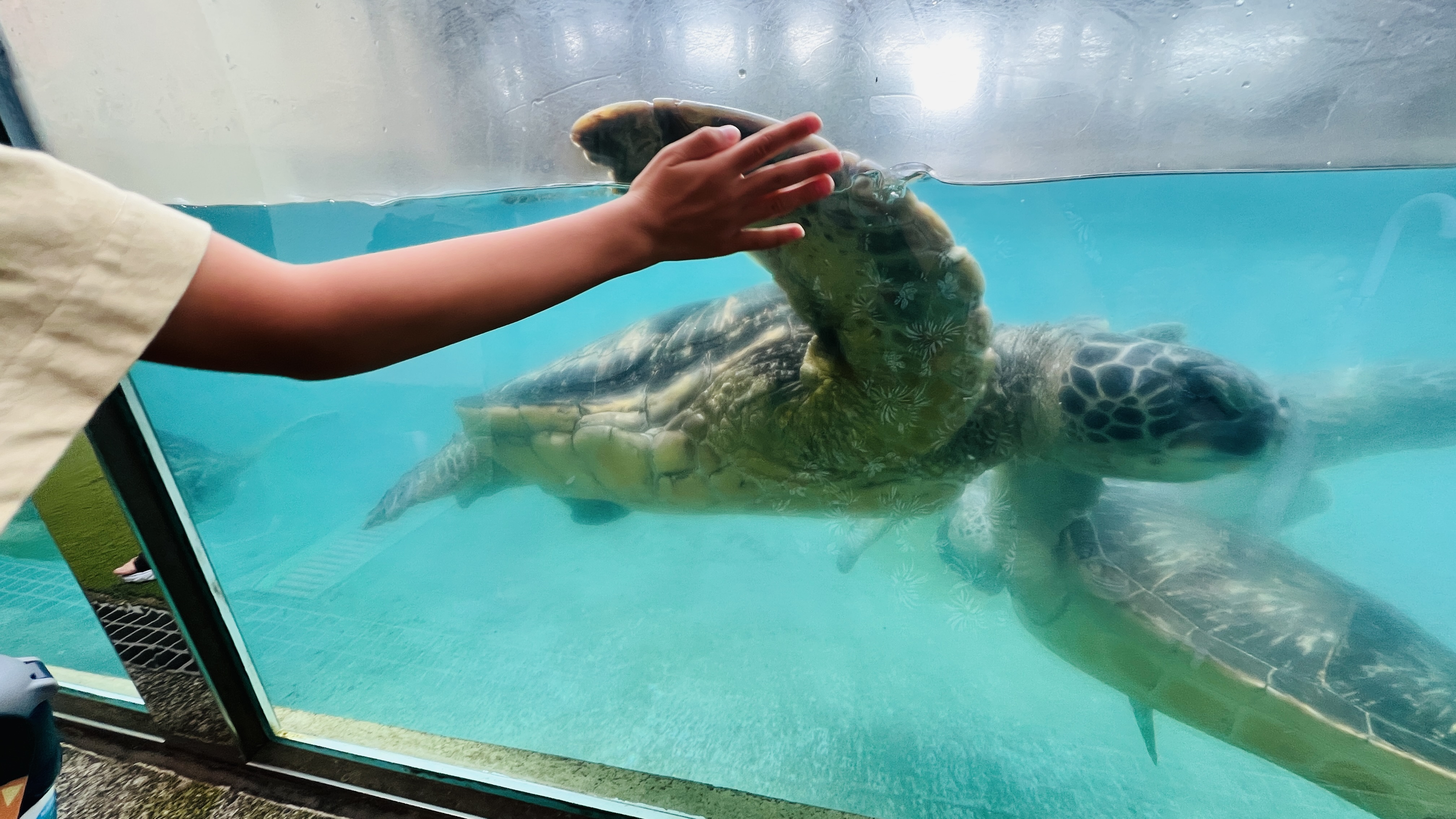 외부로 나와서 커다란 거북이와 하이타치 하는 유노 ^^
