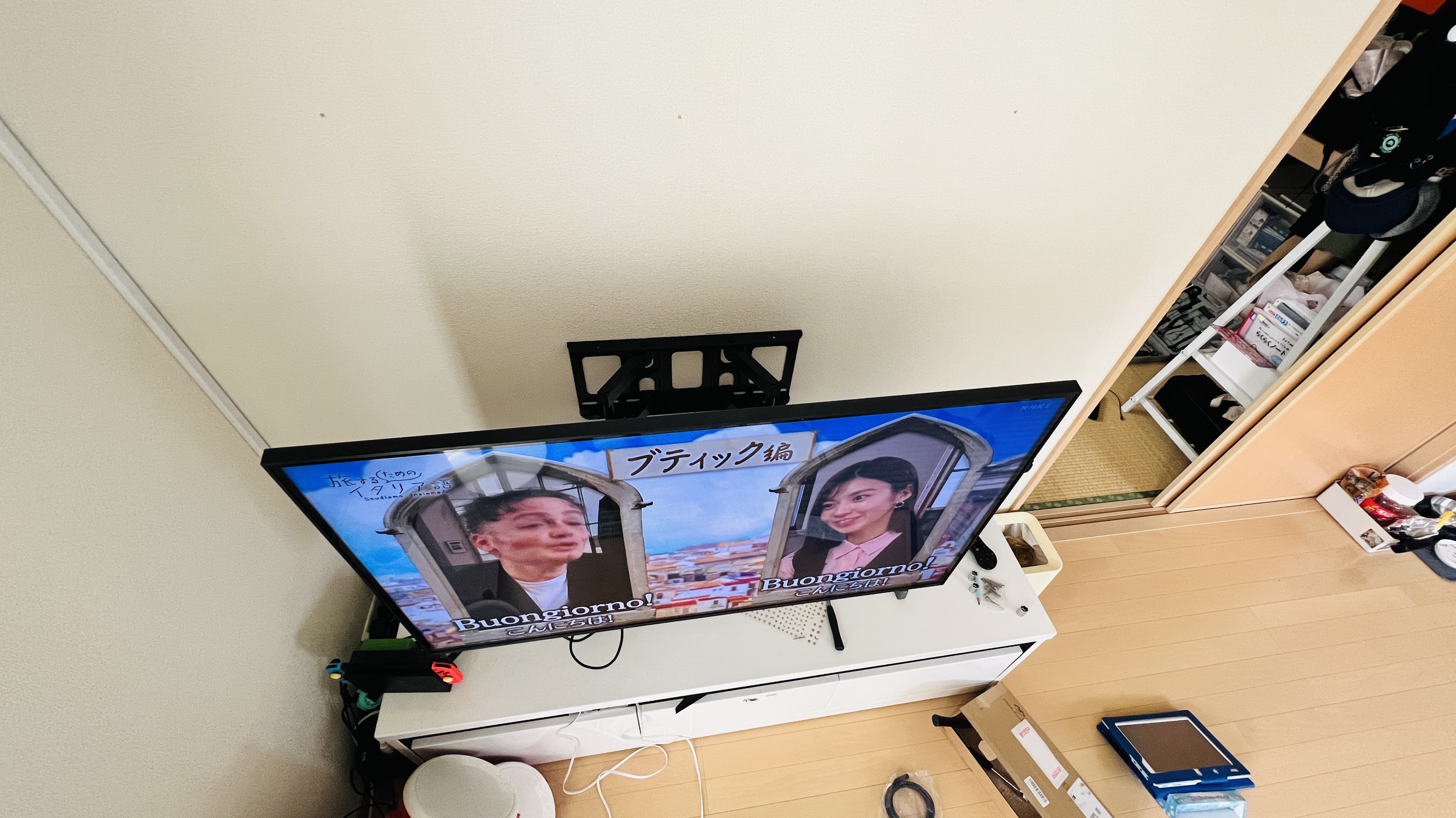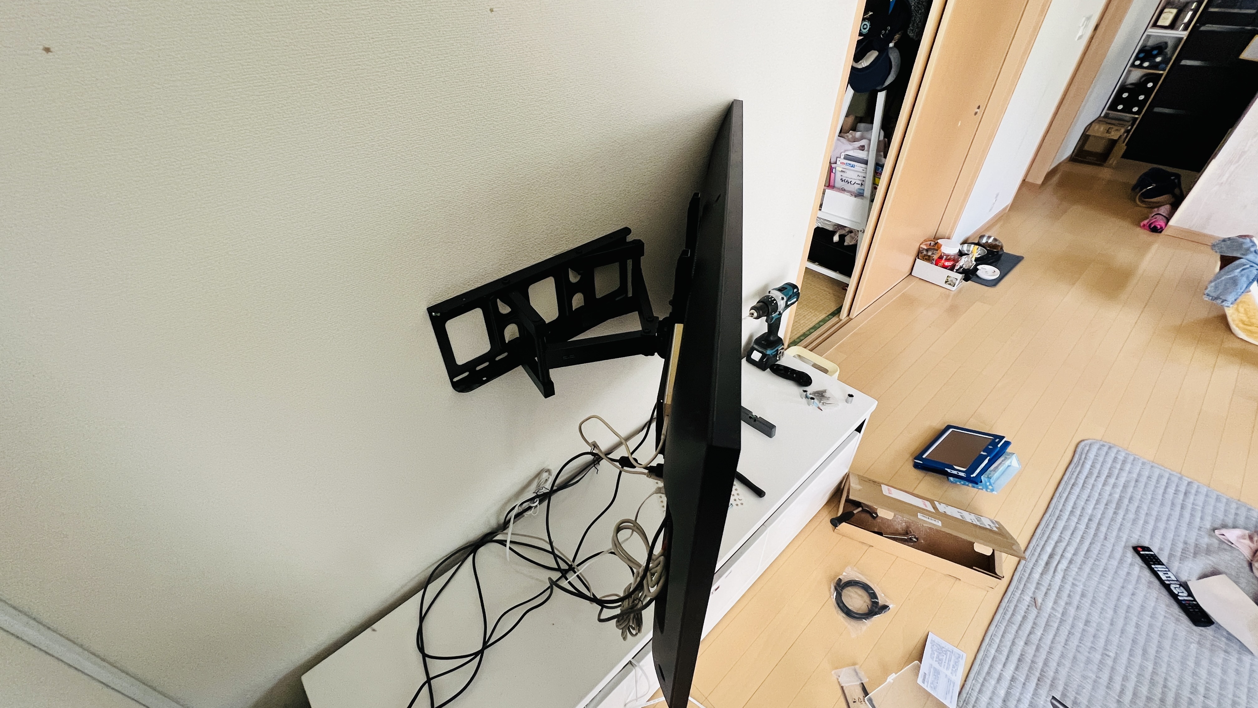 자!!! 벽걸이는 완성했으니, 아직 다리도 떼지 않은 TV를 한번 걸어봅니다.