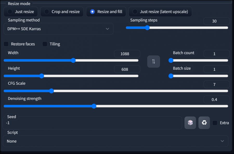 Denoising strength는 높으면 높을수록 새로운 이미지가 되고, 낮으면 낮을수록 원본과 가까워집니다.