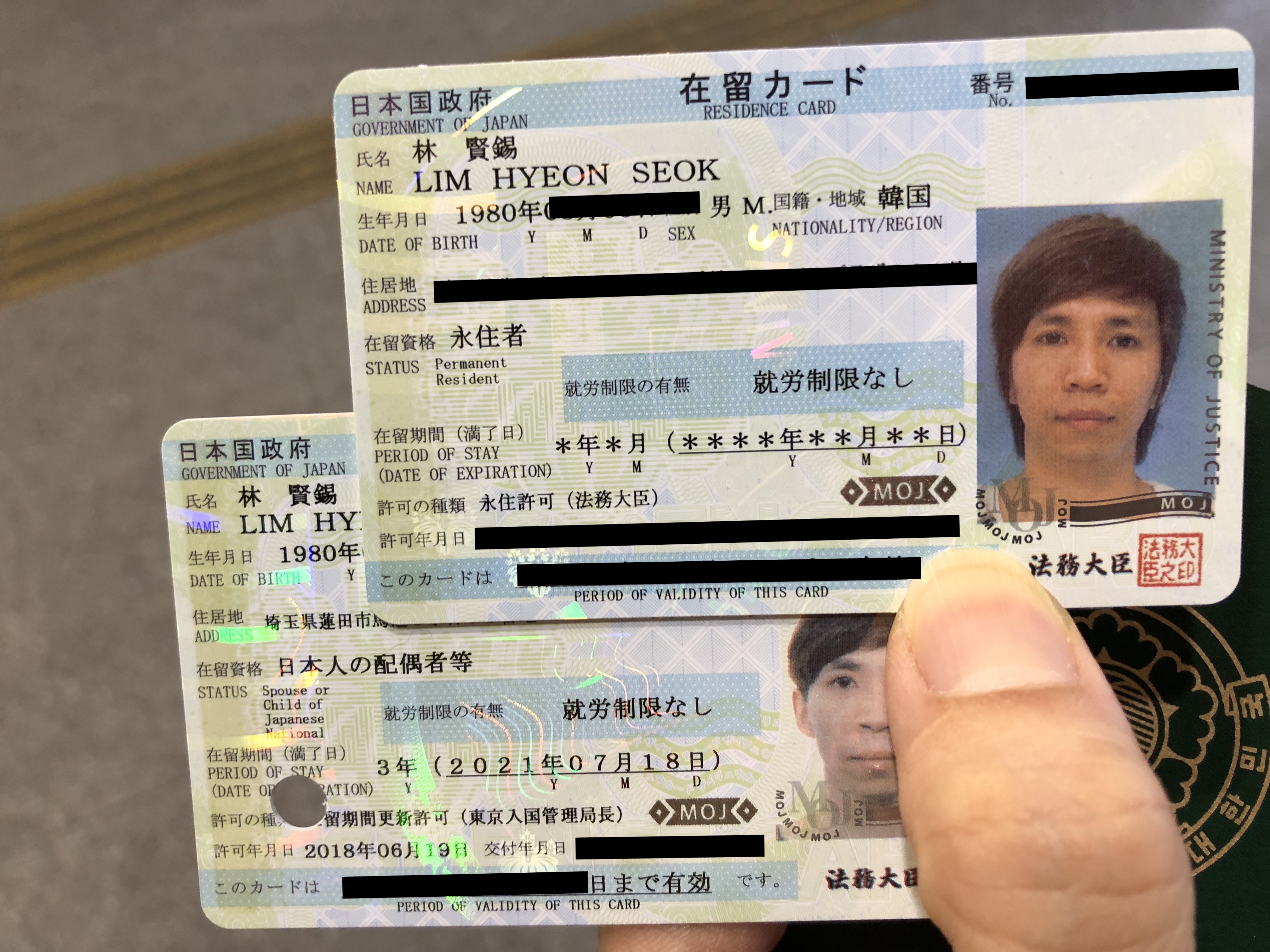 뒤쪽엔 무효된 3년재류카드. 역시 "일본인의배우자" 조건의 비자입니다.