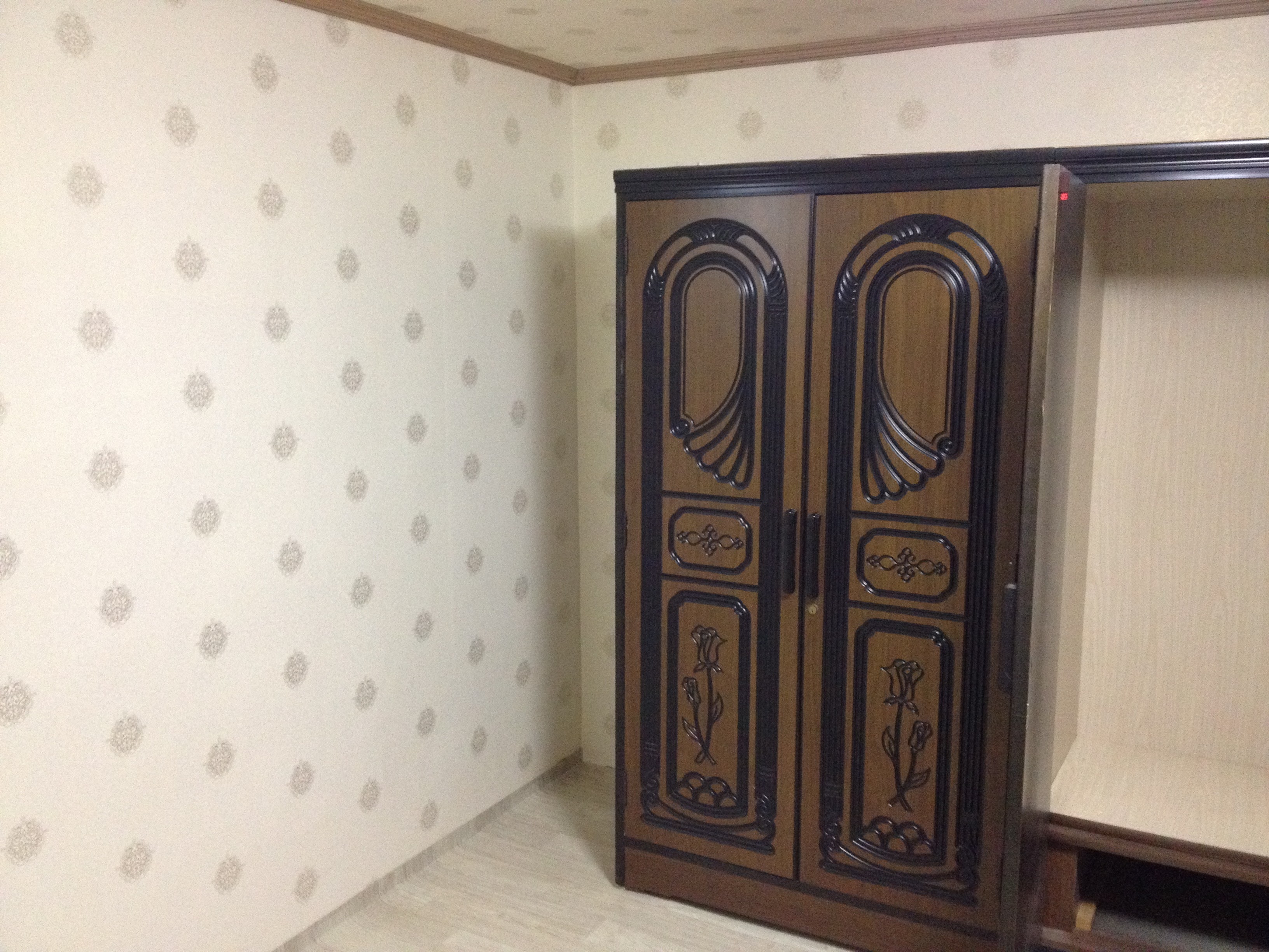 방문밖에 살짝 보이지만 장판을 깔기위해 장농을 잠시 거실로 빼놨습니다.