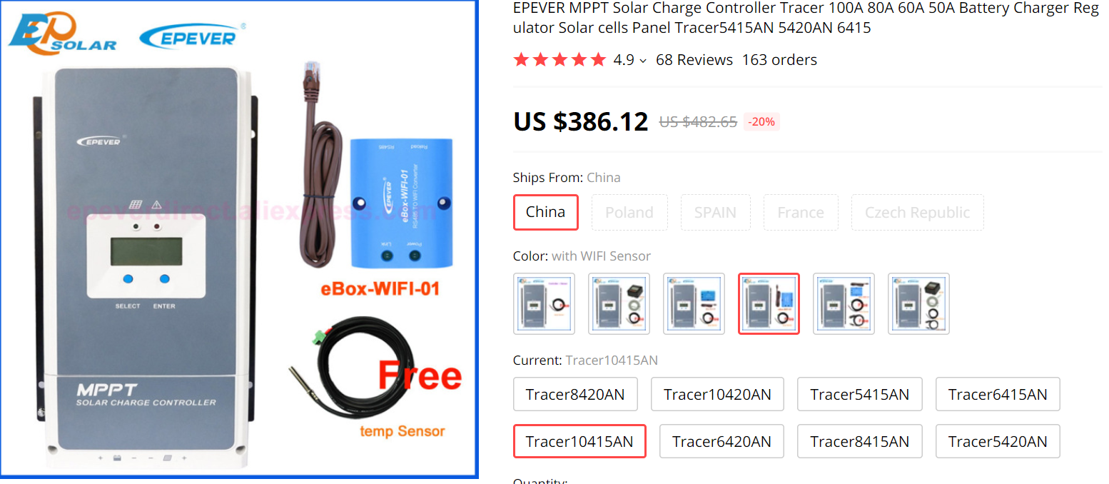 - 태양광 컨트롤러 100a로 교체 (현재 있는 것은 40a) : 40,000엔 가량