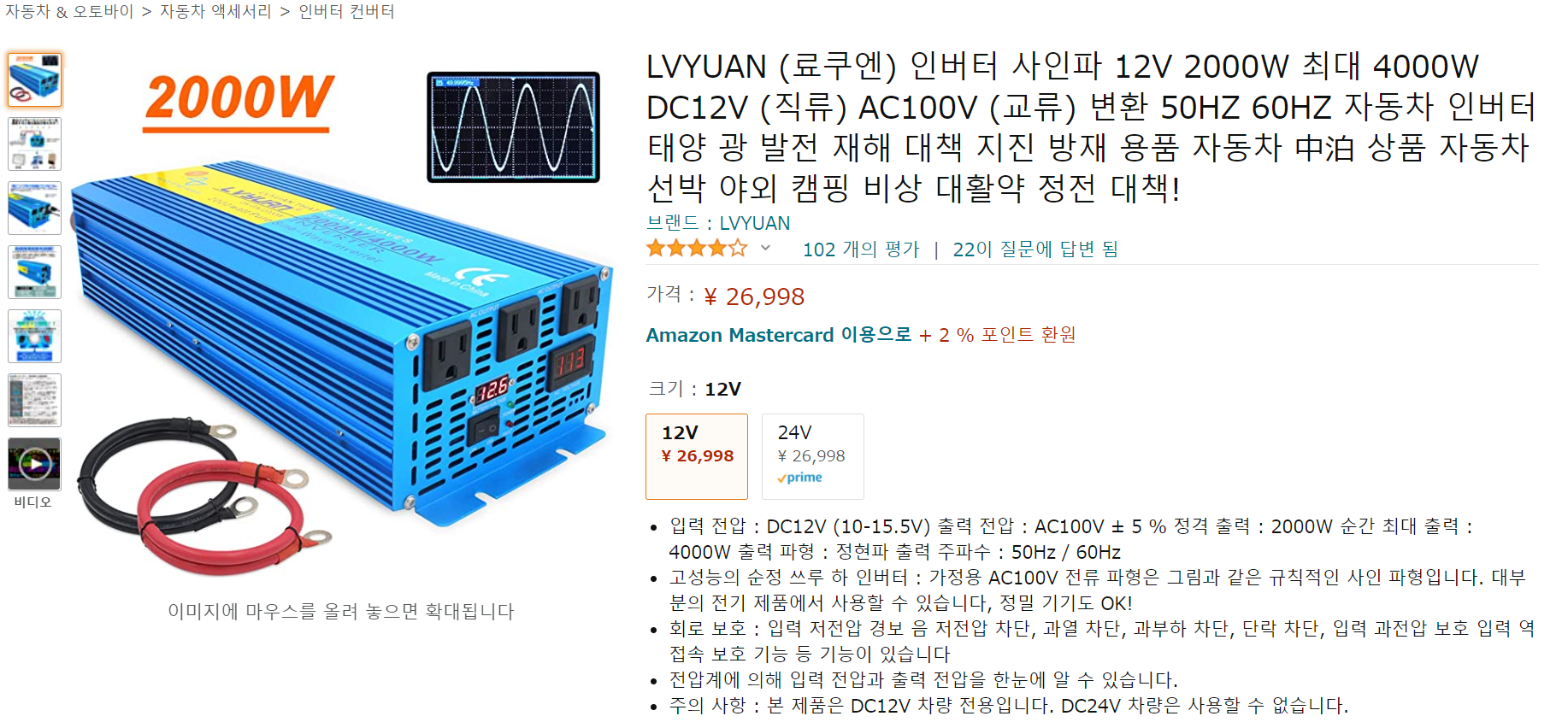 - 현재 사용중인 인버터를 50hz 2000w로 교체 (현재 있는 것은 55hz 2000w) : 30,000엔 가량