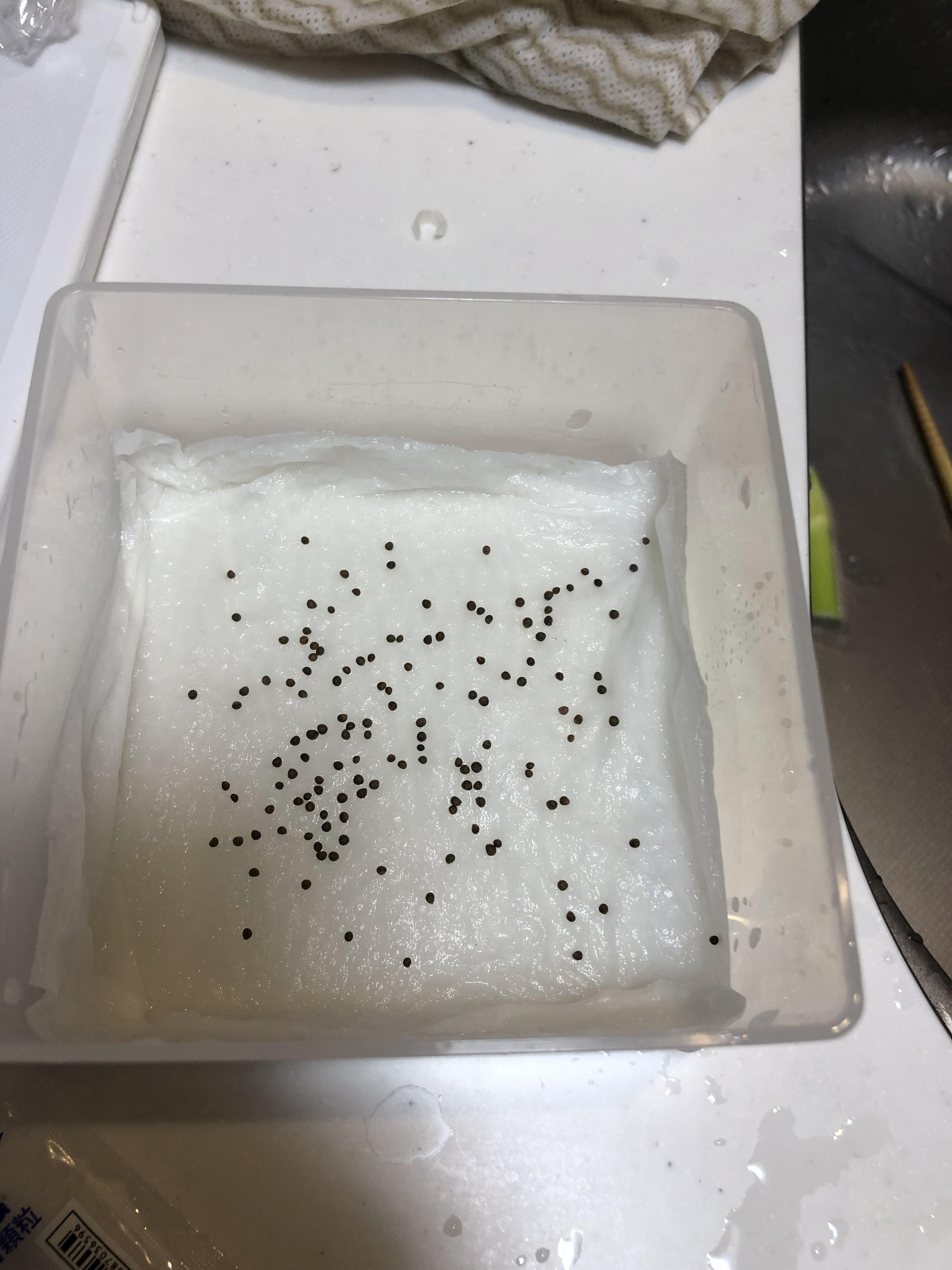 아니다.. 어디서 본건 있어가지고, 키친타올 적셔서 깔고, 그 위에 씨를 놨습니다.