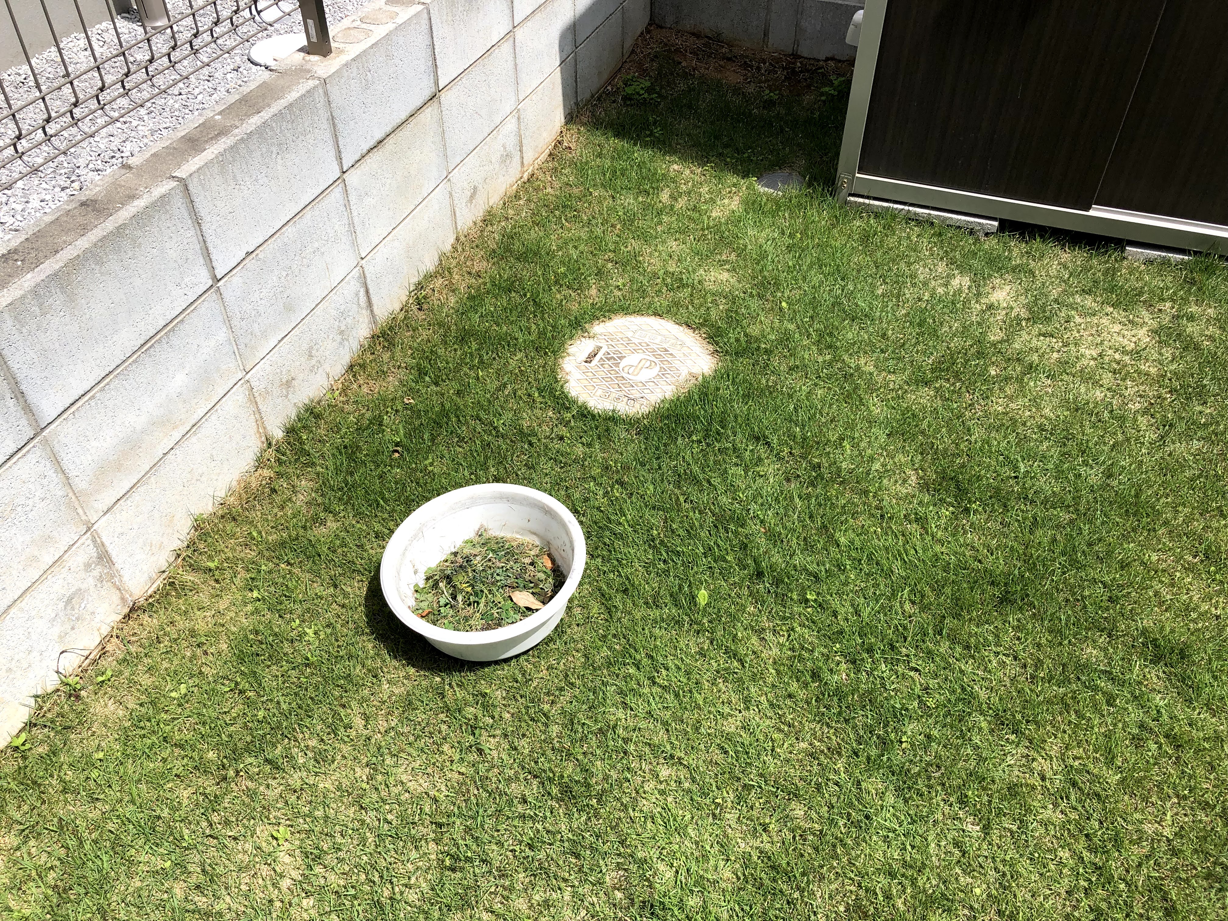 인조잔디(비닐로 만든)는 이런게 없어서 좋은데, 진짜 잔디는 위에서 보면 이런 느낌이에요.