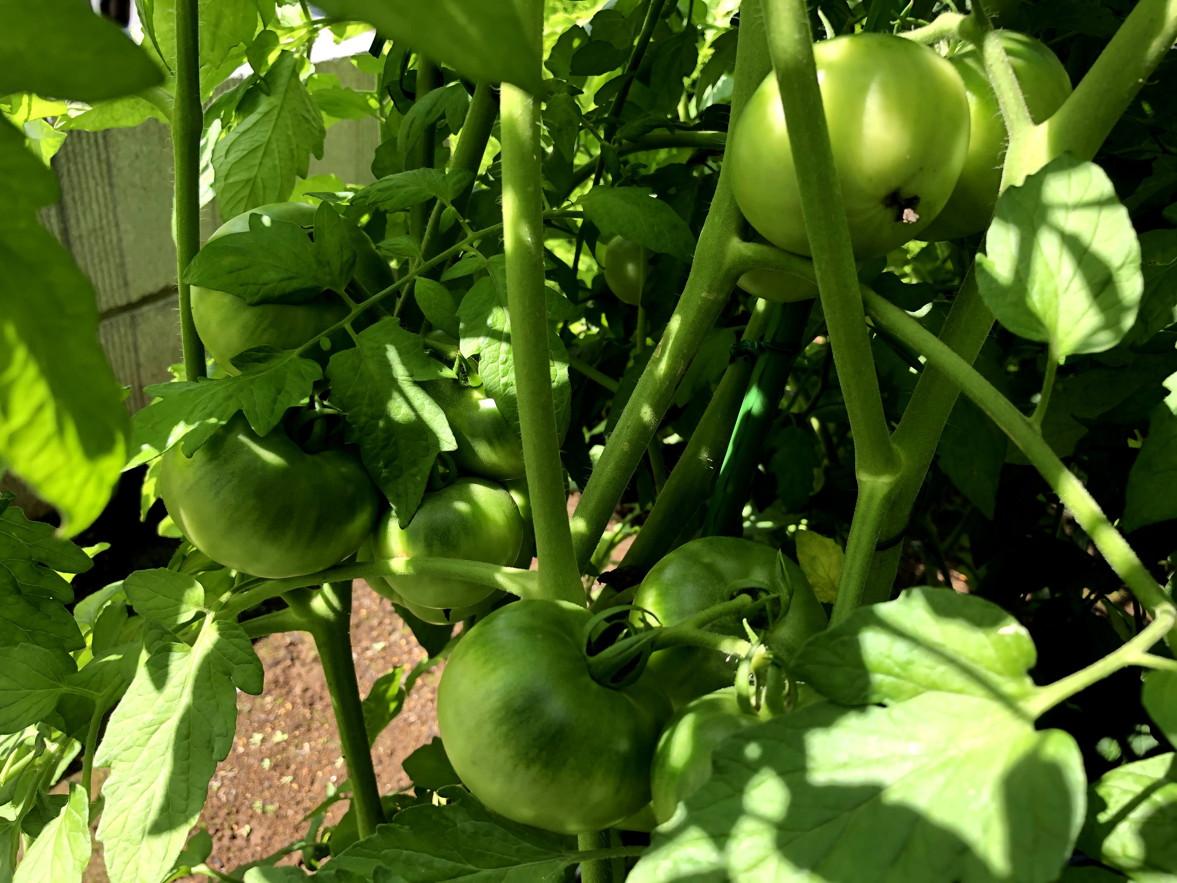 곳곳에 녹색 토마토가 여물고 있습니다.