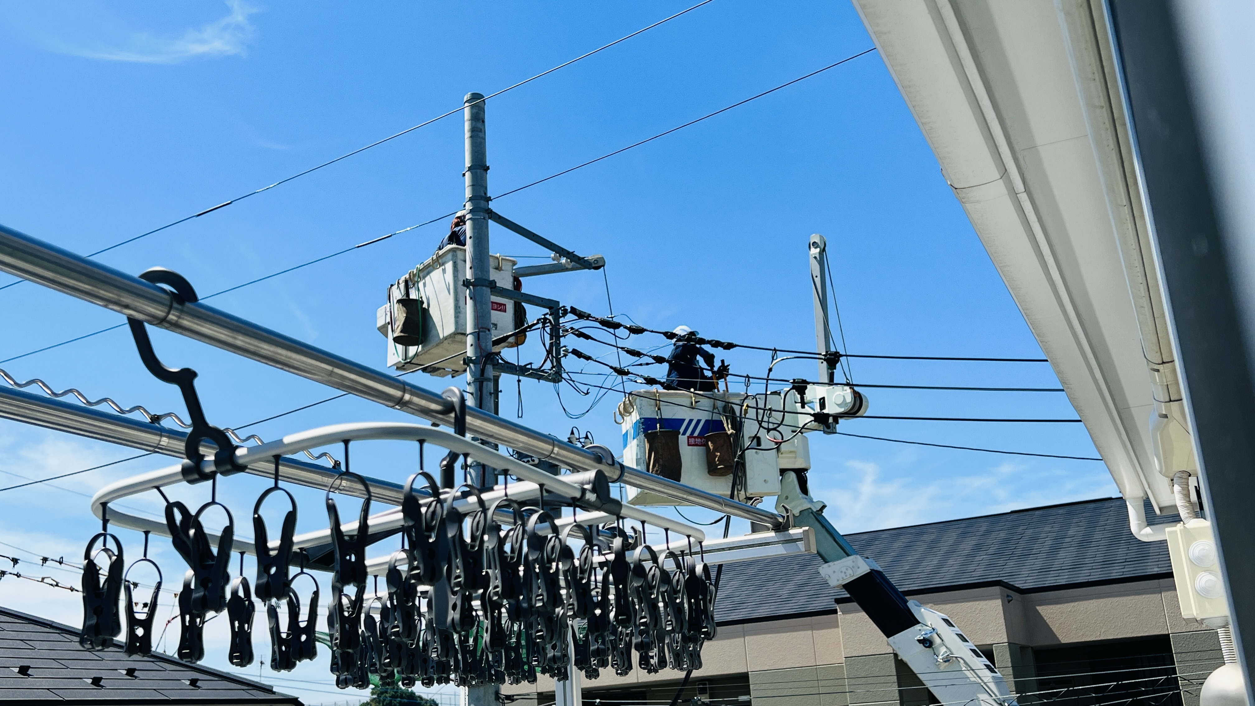 집 저쪽 뒤편의 집쪽 도로에서도 공중 작업을 진행하더라구요.