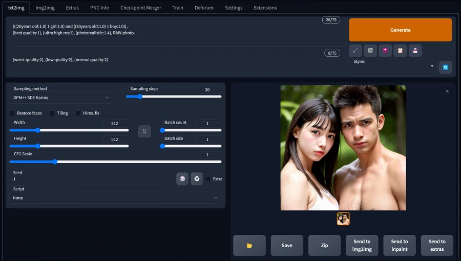 음? 그런데 왜 여자만 나오죠? 프롬프트에는 남자도 넣었는데요??
