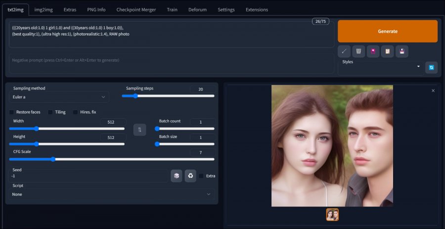 AI라는 랜덤산출방식 때문에 프롬프트의 해석이 완벽하지 않아 여자가 2명 나오는 경우도 있습니다.