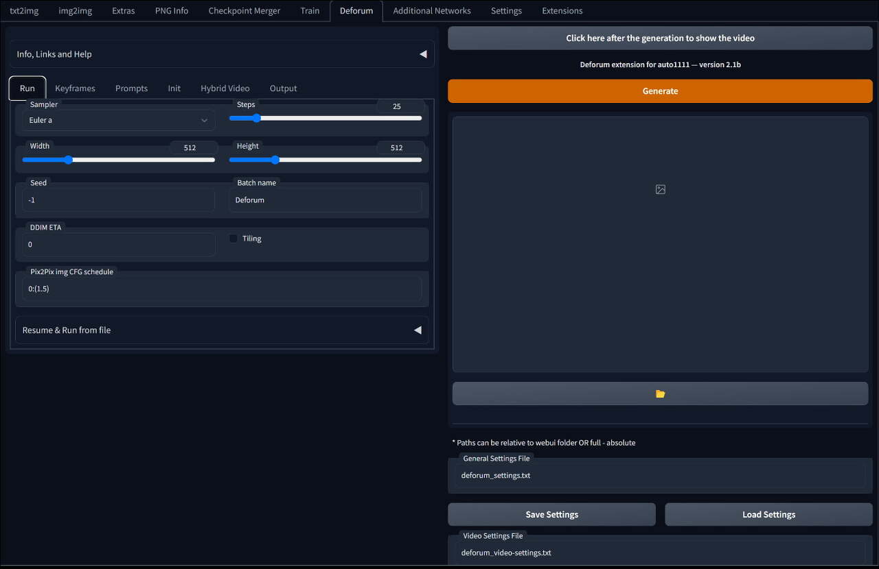 그럼 Deforum 이라는 탭 하나가 추가됩니다. 열어봅시다.